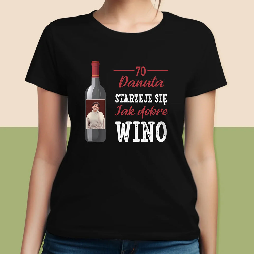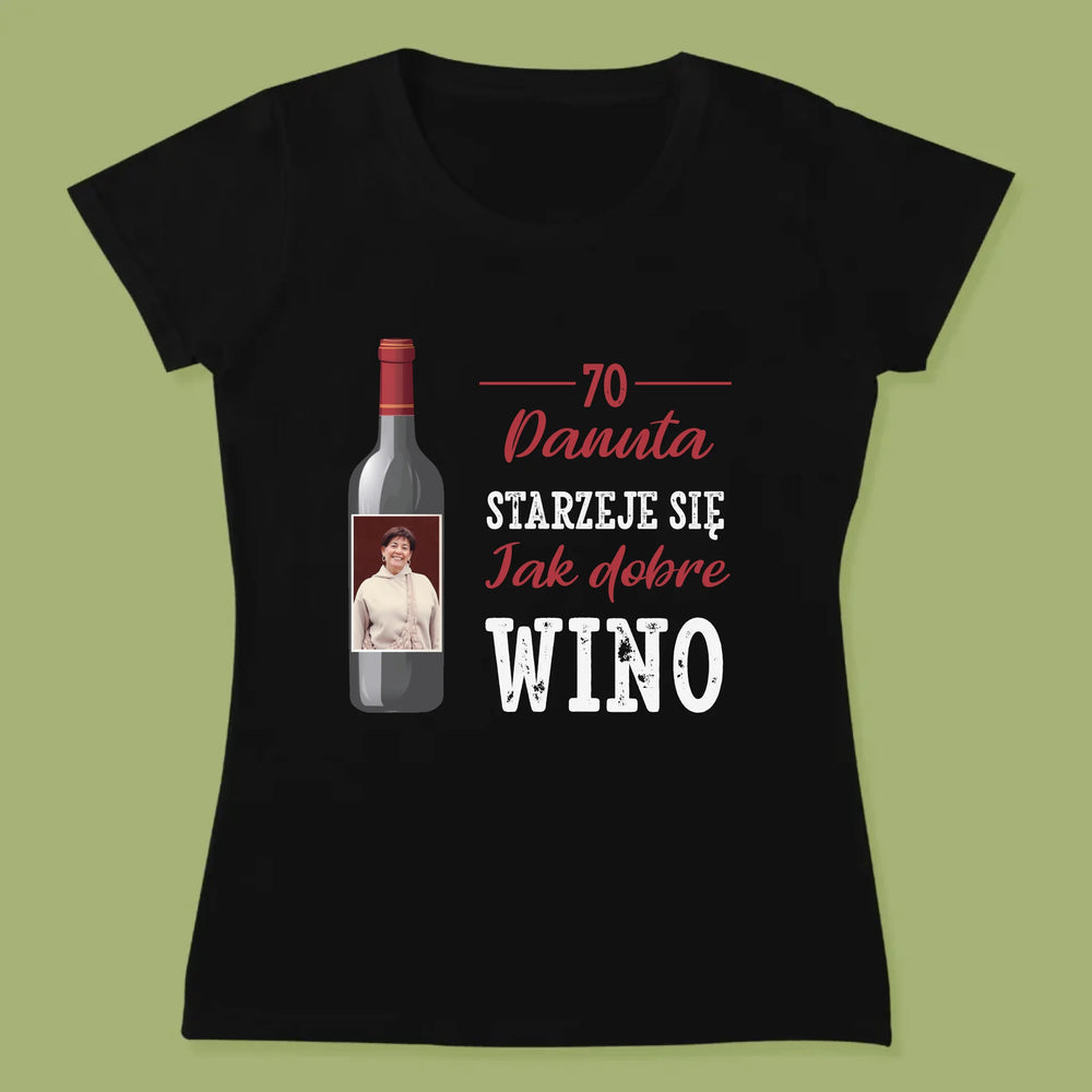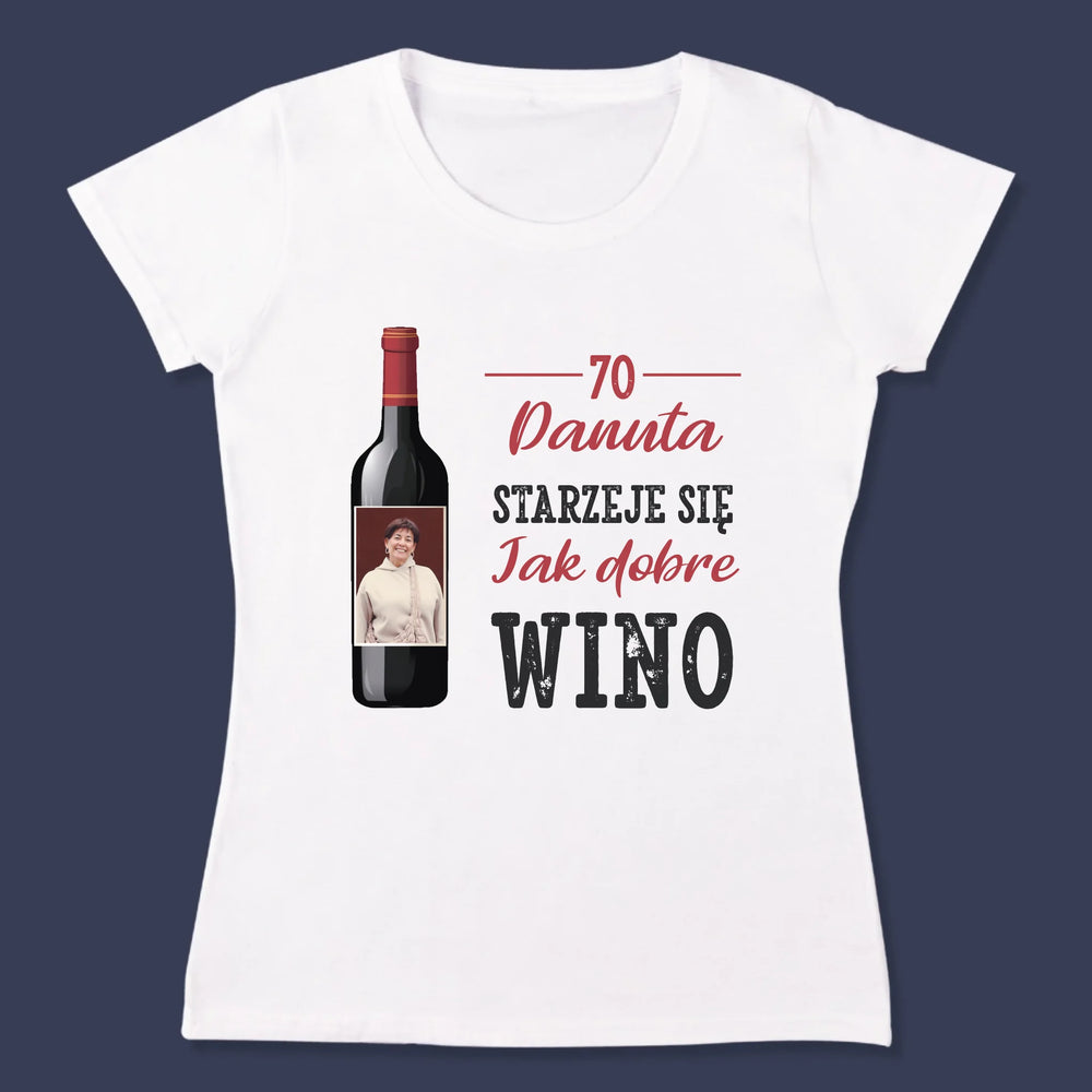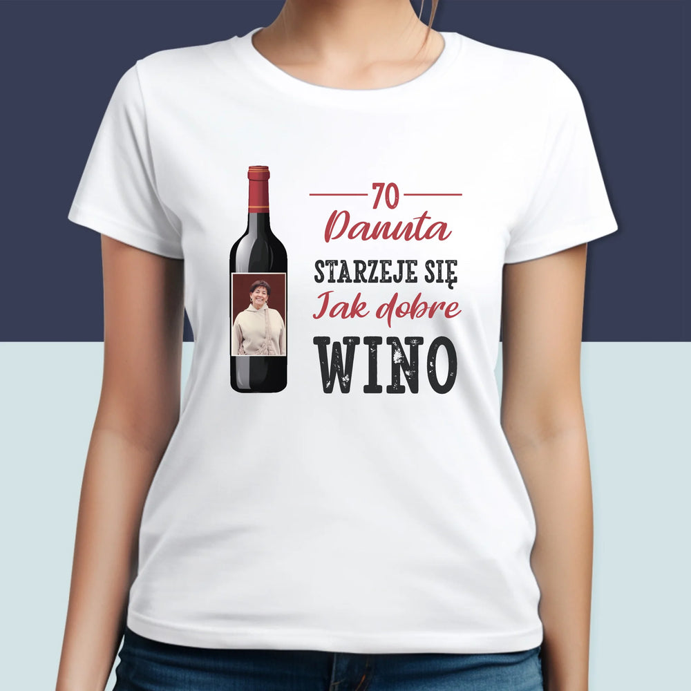 Zdjęcie I Podpis: Jak Dobre Wino - Personalizowana Koszulka Damska