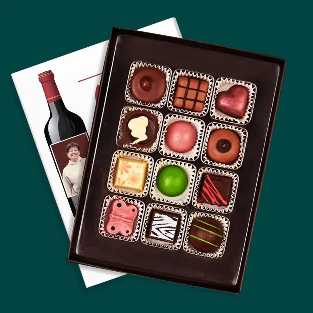 Pyszne praliny z belgijskiej czekolady w eleganckim pudełku z wybraną przez Ciebie personalizacją.
