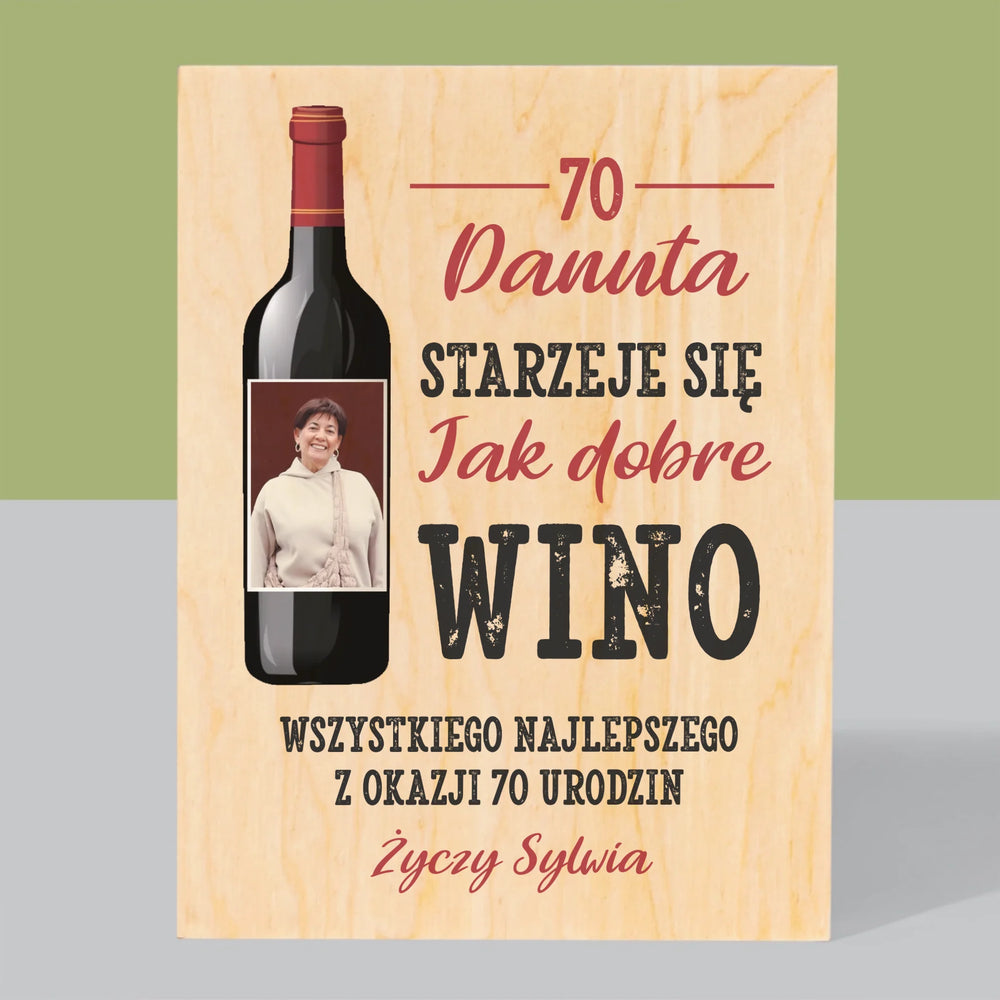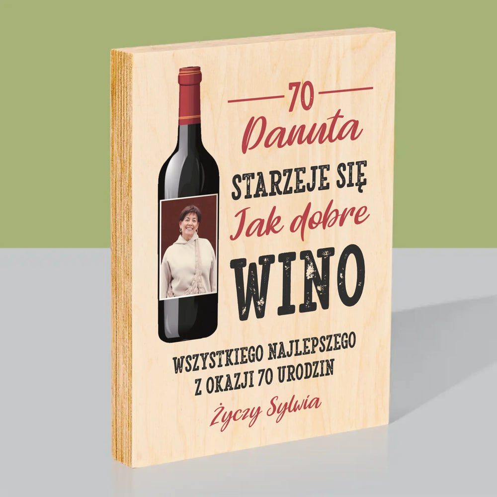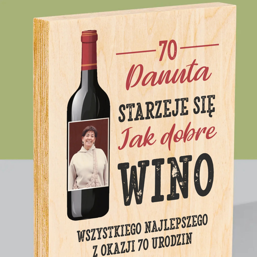 Zdjęcie I Podpis: Jak Dobre Wino - Wydruk na drewnie - Pion