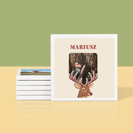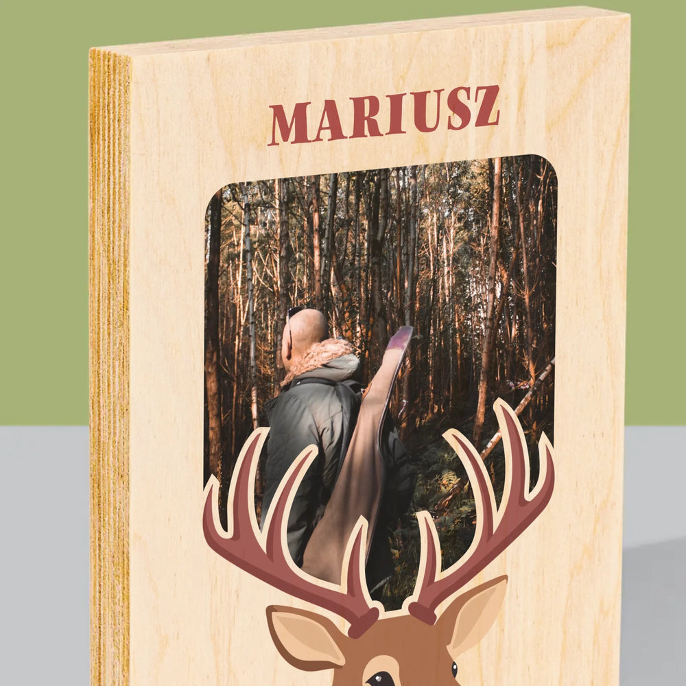 Zdjęcie I Podpis: Jeleń - Wydruk na drewnie - Pion