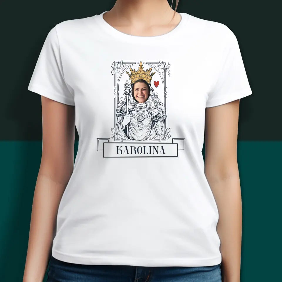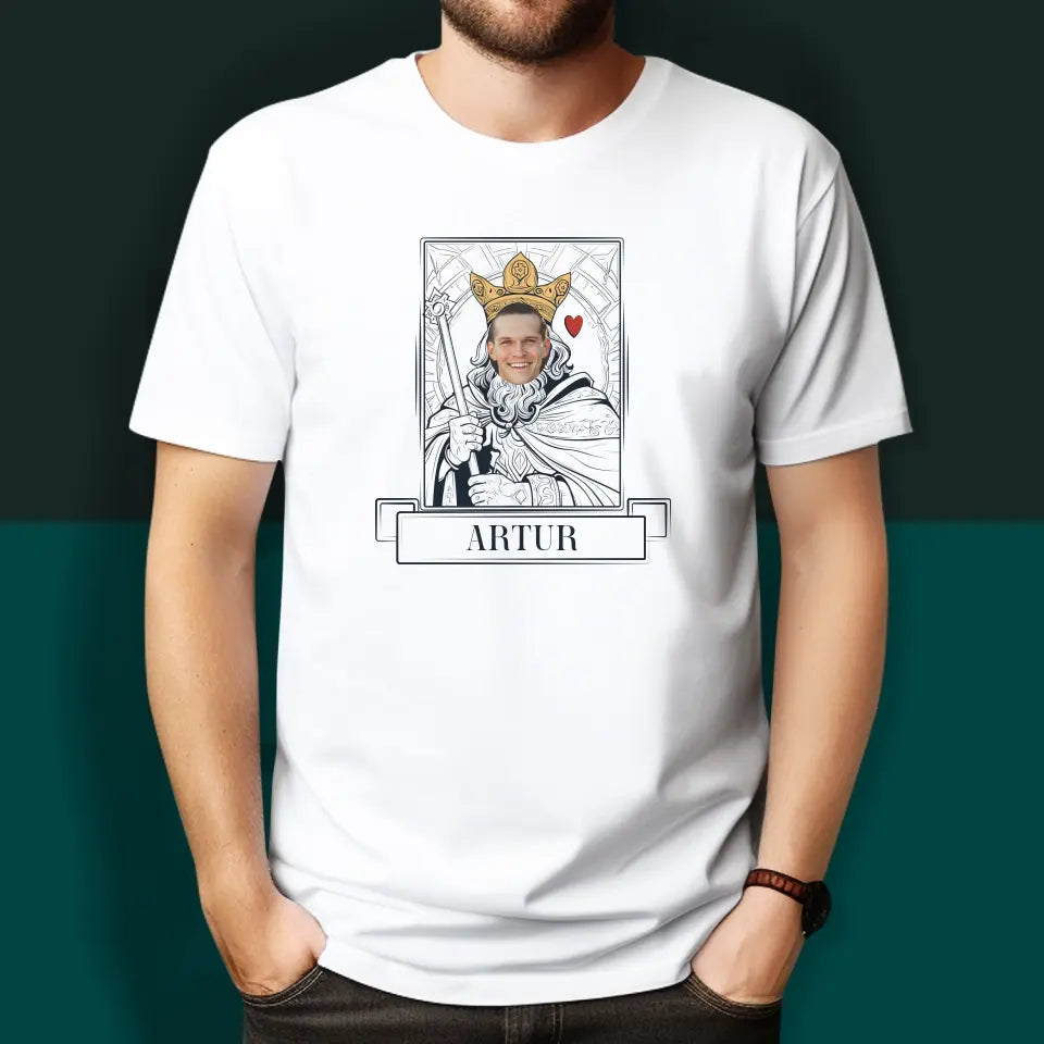 Zdjęcie i Podpis: Karciane Król i Dama Kier - Personalizowane Koszulki Dla Par