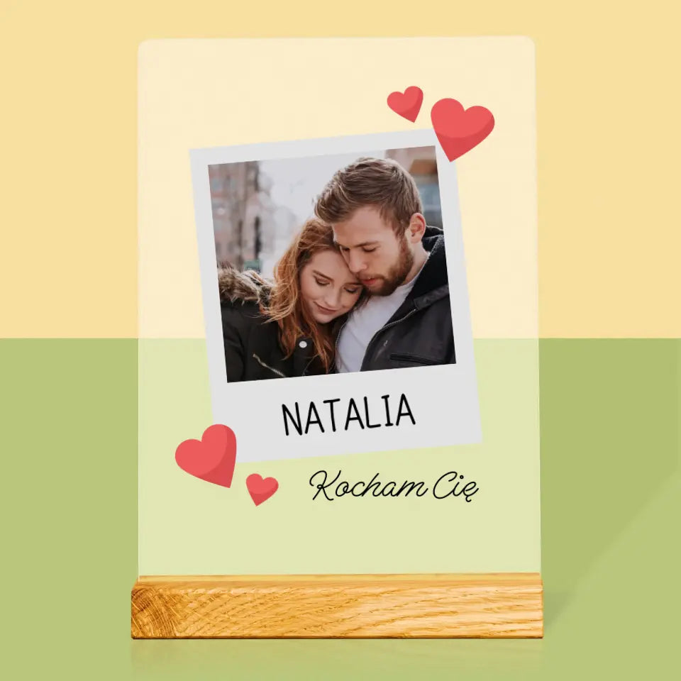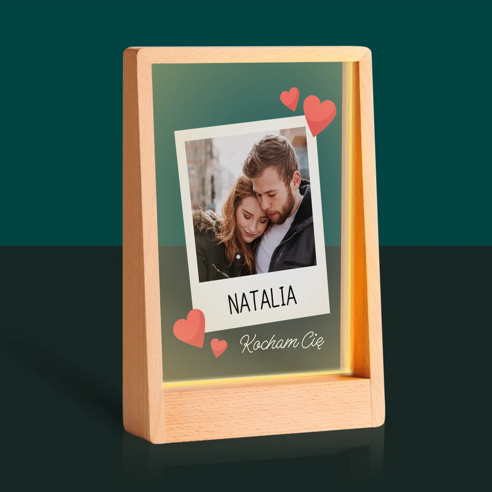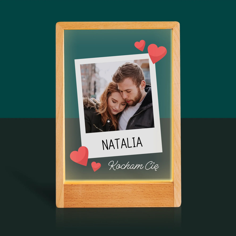 Zdjęcie i Podpis: Kocham Cię - Wydruk na szkle akrylowym w ramce LED