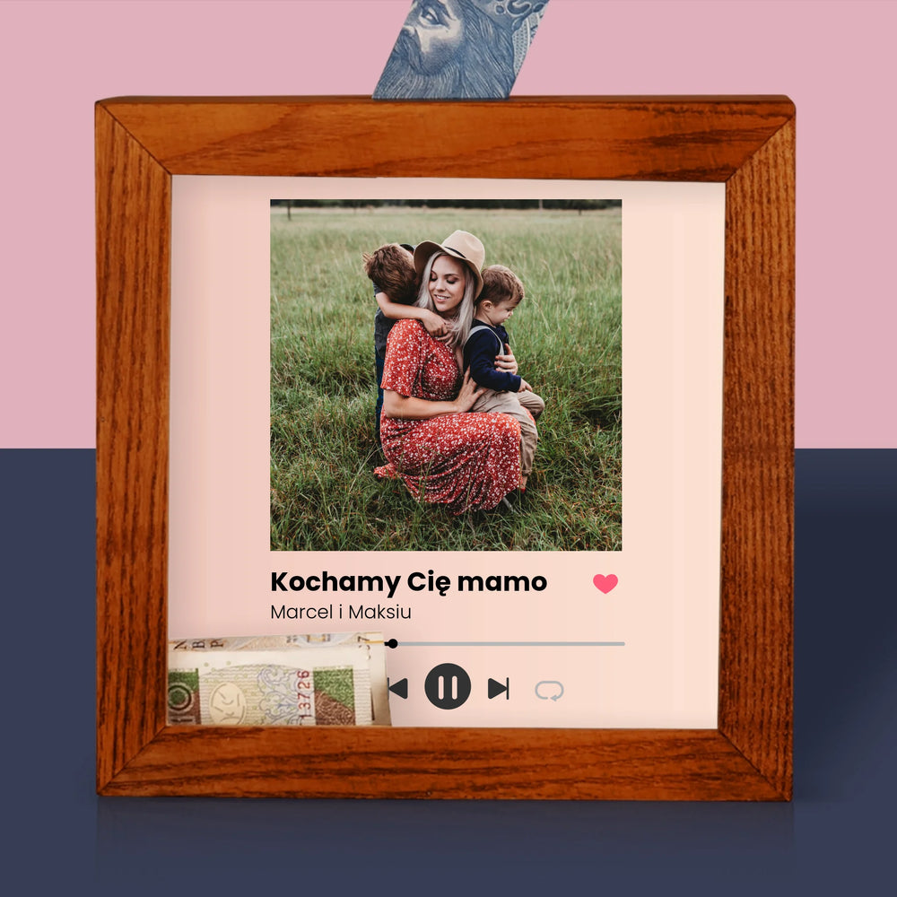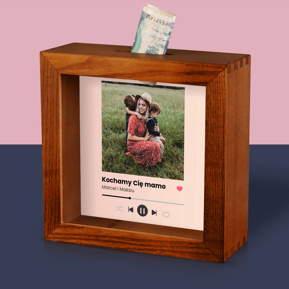 Zdjęcie I Podpis: Kochamy Cię Mamo - Drewniana skarbonka