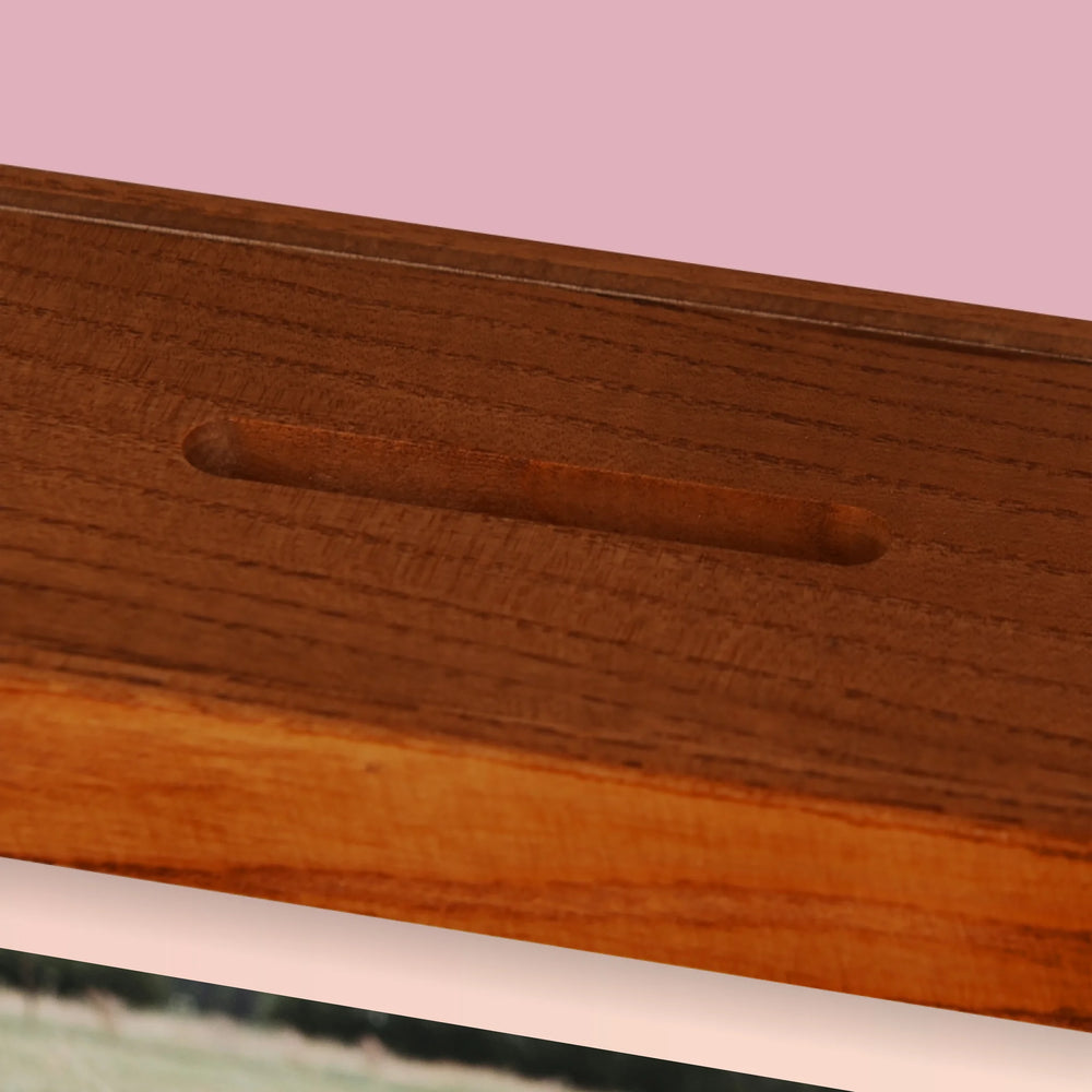 Wykonana z bejcowanego i lakierowanego drewna jesionowego.