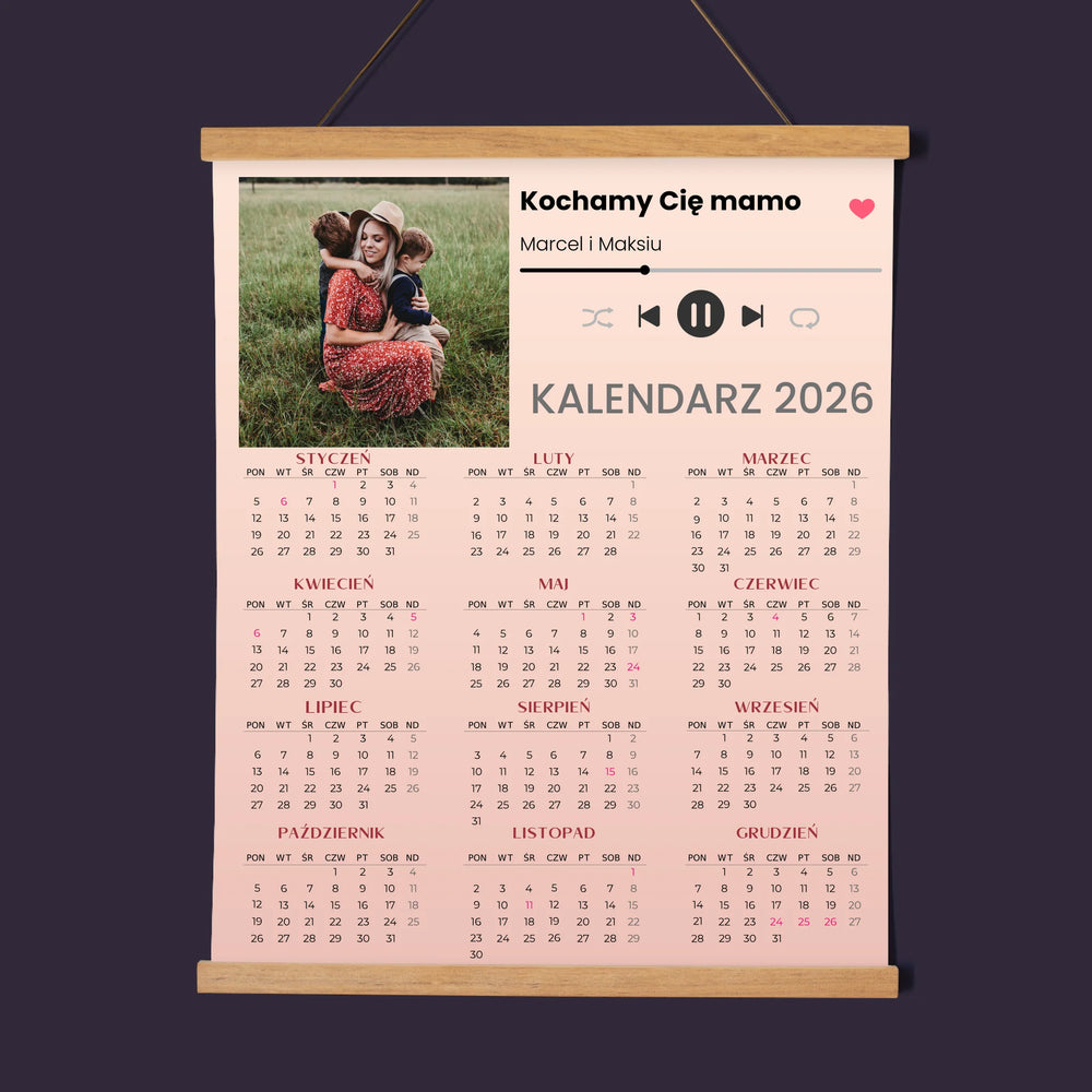 Zdjęcie i Podpis: Kochamy Cię Mamo - Kalendarz plakatowy z listwami