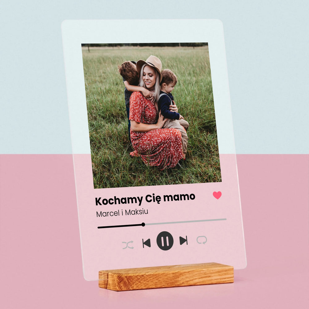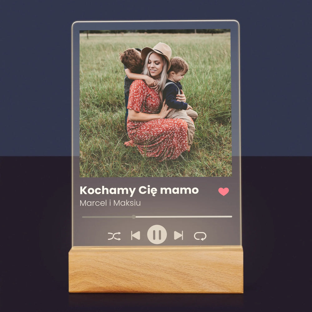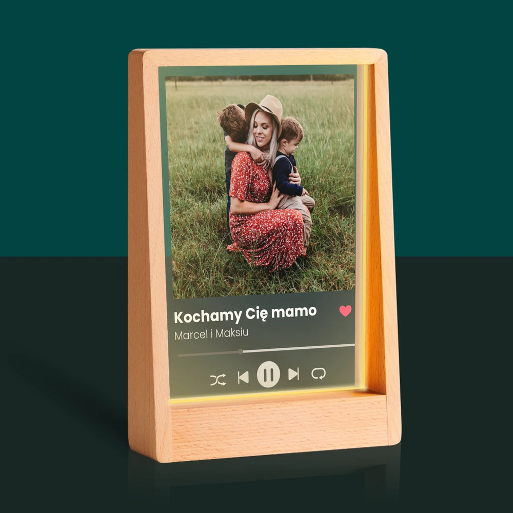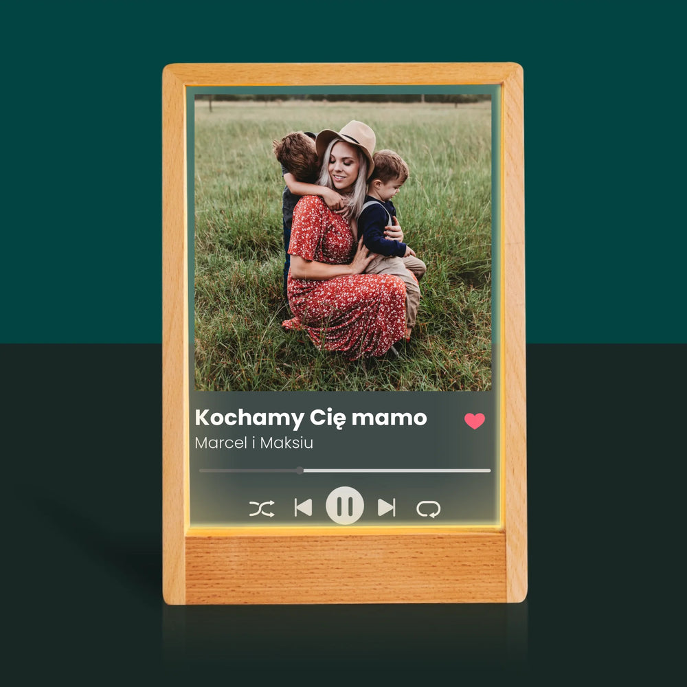 Zdjęcie i Podpis: Kochamy Cię Mamo - Wydruk na szkle akrylowym w ramce LED