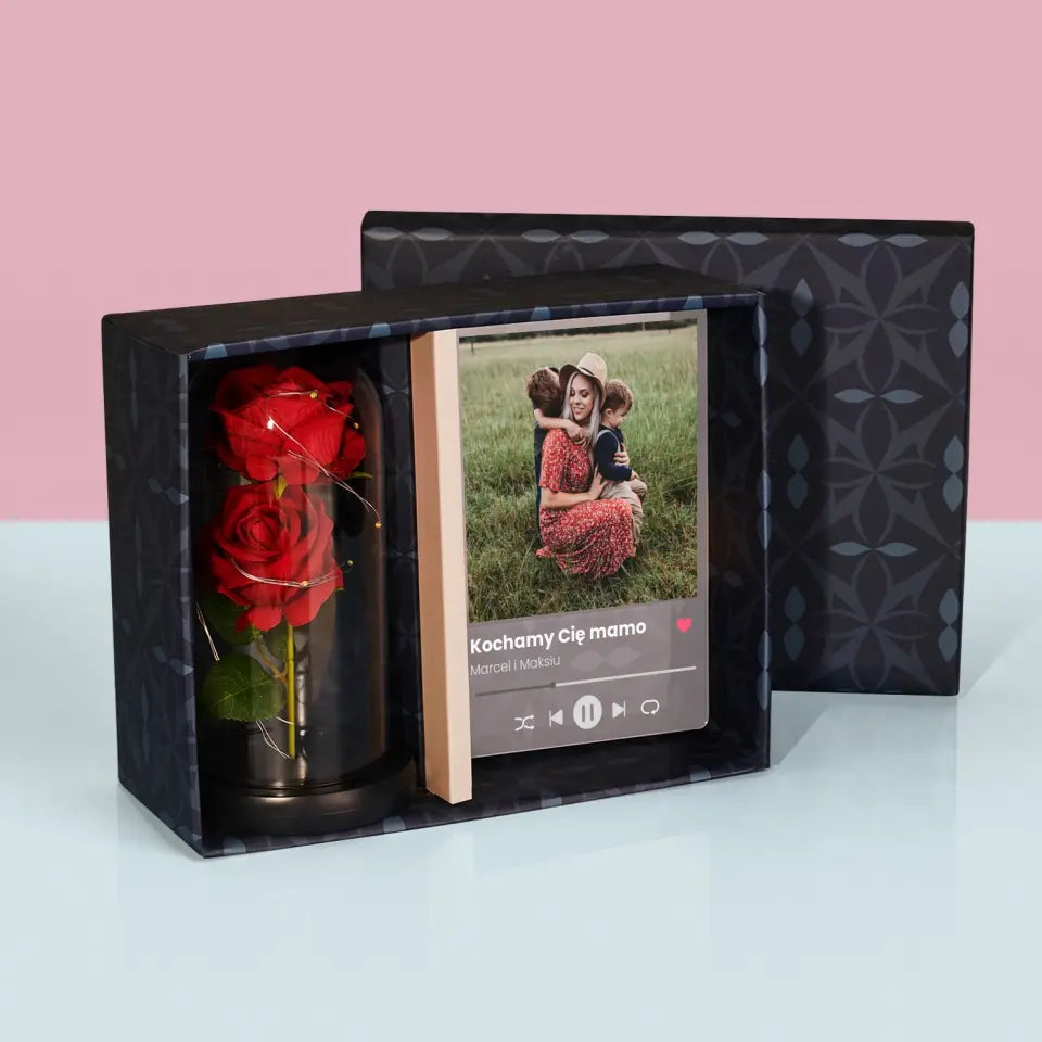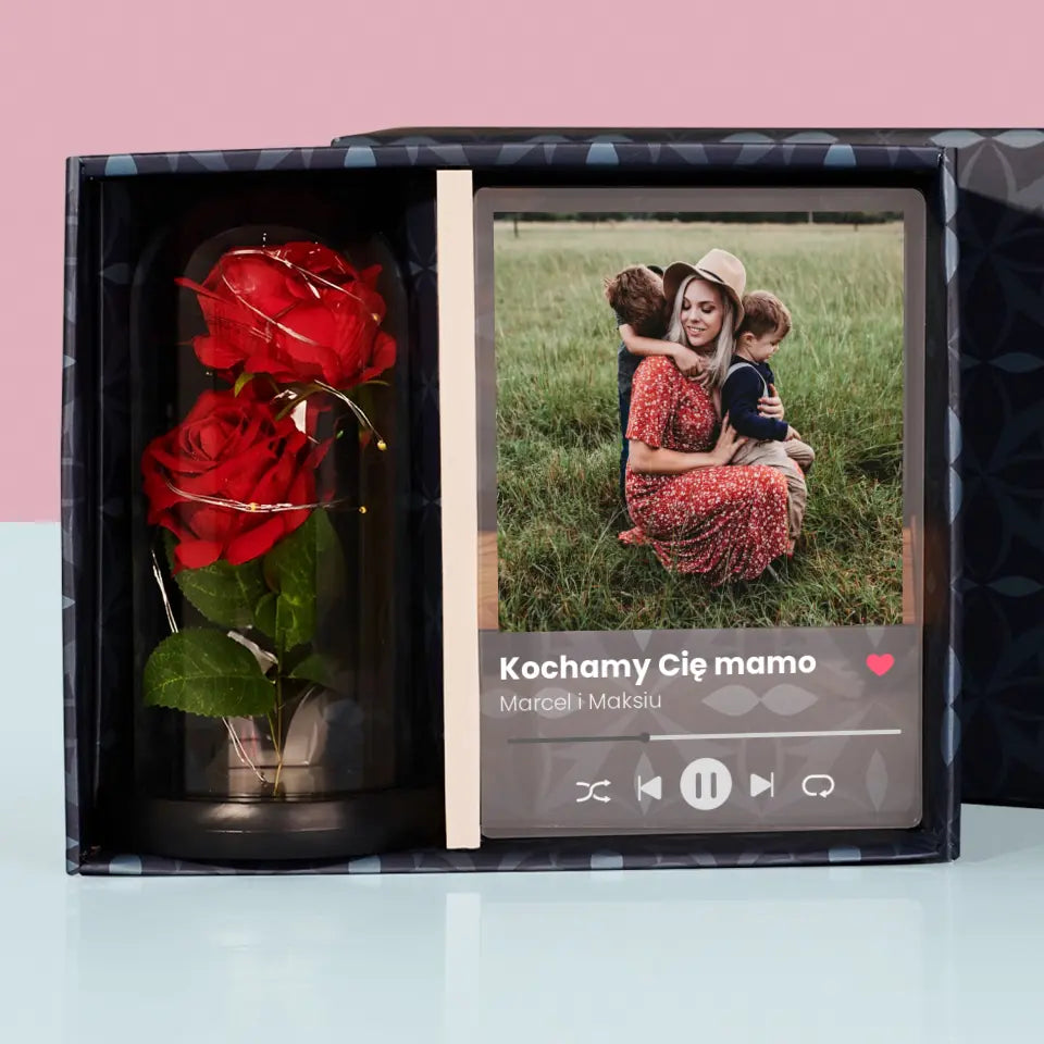 Zdjęcie i Podpis: Kochamy Cię Mamo - Zestaw prezentowy z wieczną różą