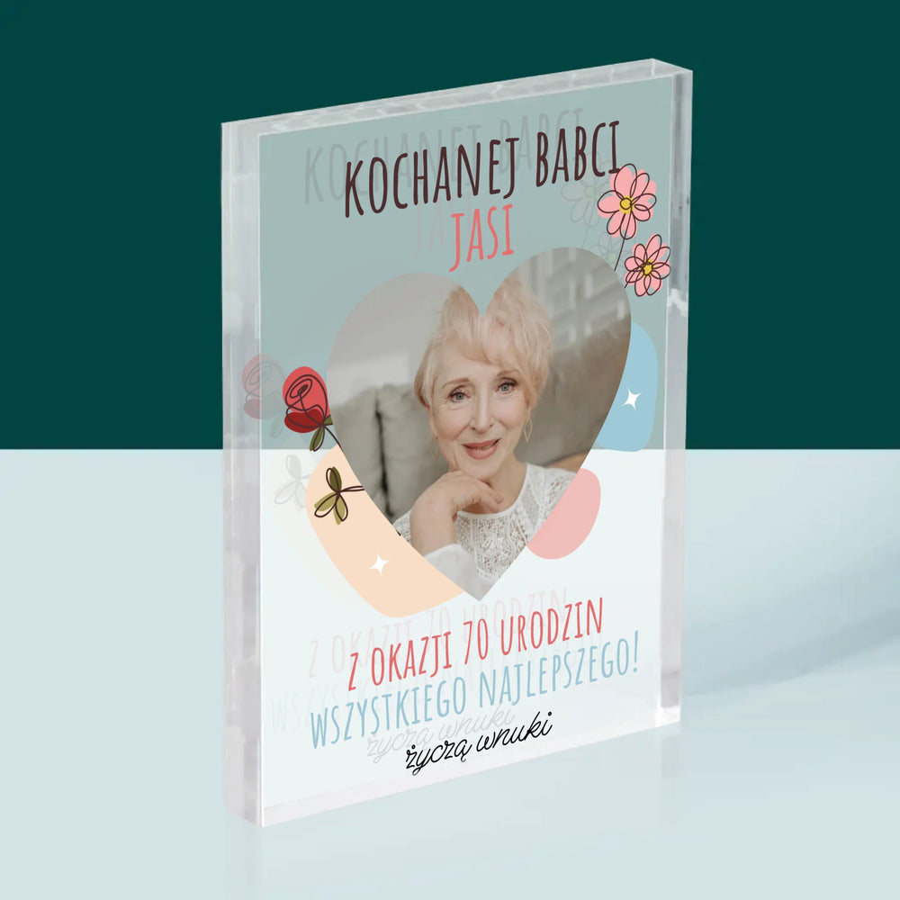 Zdjęcie I Podpis: Kochanej Babci z Okazji Urodzin - Blok Akrylowy z Nadrukiem