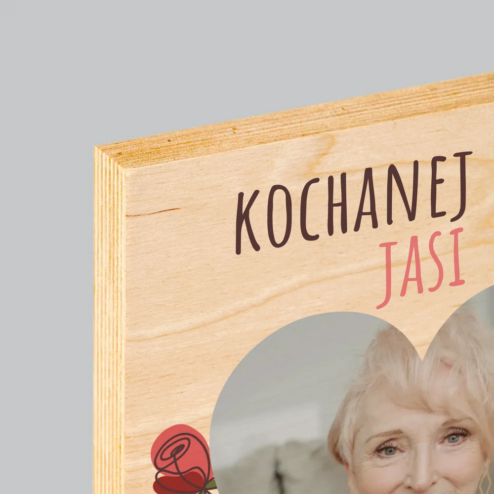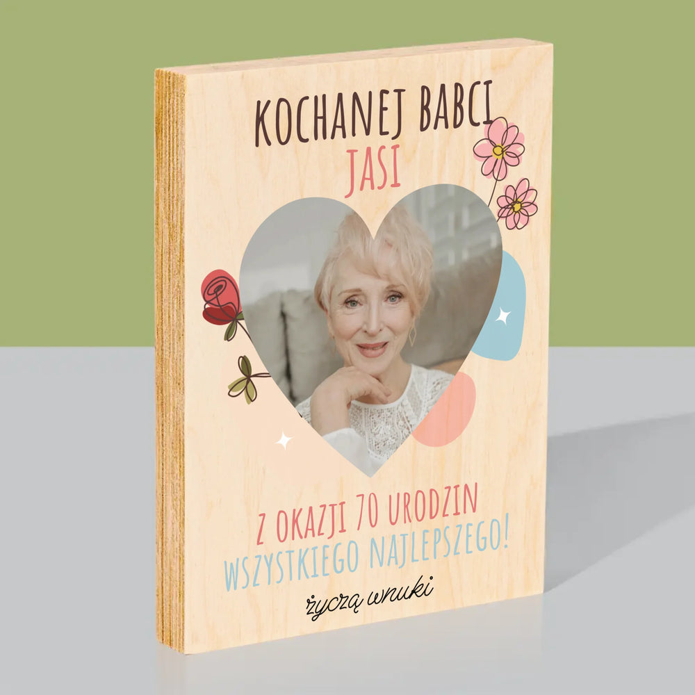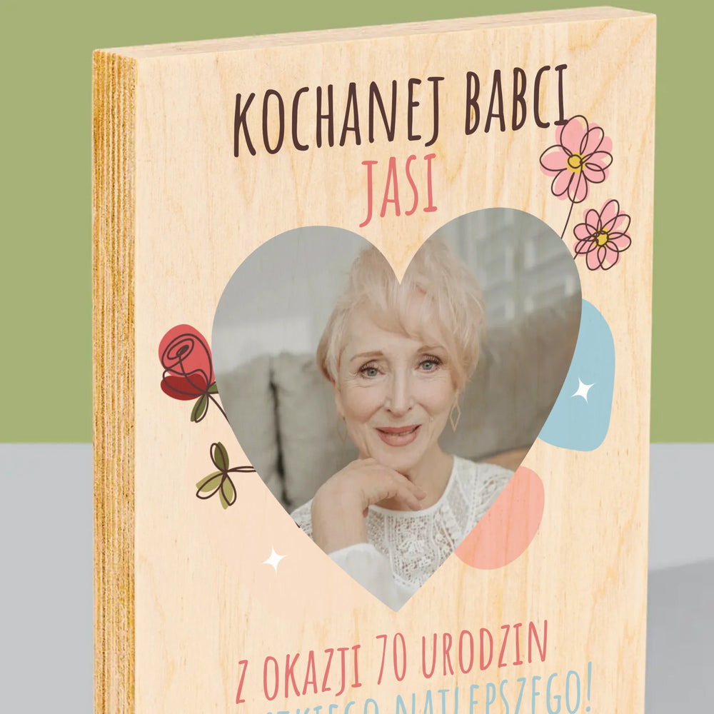 Zdjęcie I Podpis: Kochanej Babci z Okazji Urodzin - Wydruk Na Drewnie