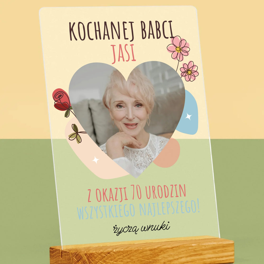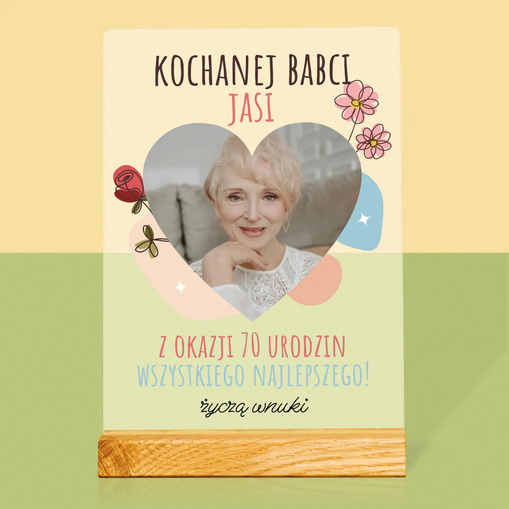 Zdjęcie I Podpis: Kochanej Babci z Okazji Urodzin - Wydruk na szkle akrylowym
