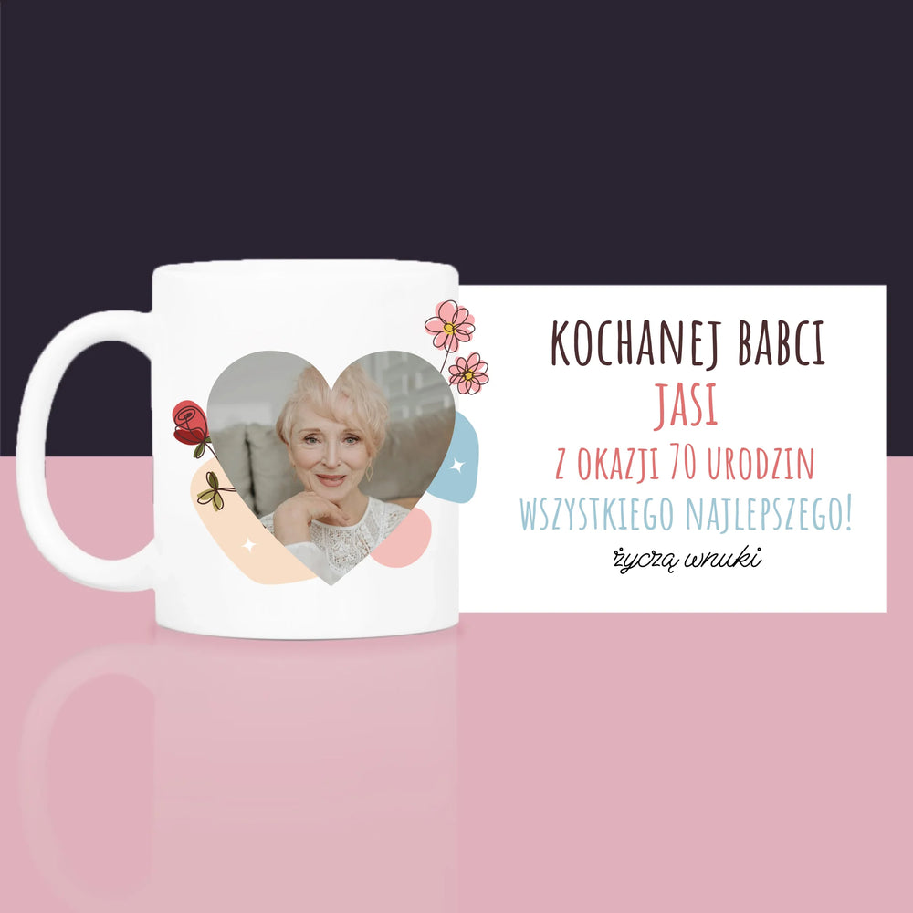 Zdjęcie i Podpis: Kochanej Babci z Okazji Urodzin - Zestaw prezentowy z kubkiem, herbatą i słodkościami