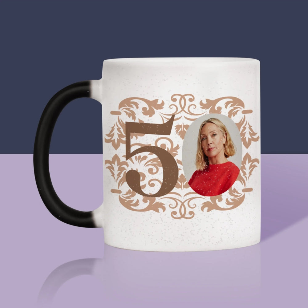 Zdjęcie I Podpis: Kochanej Mamie Z Okazji 50 Urodzin - Magiczny kubek z brokatem