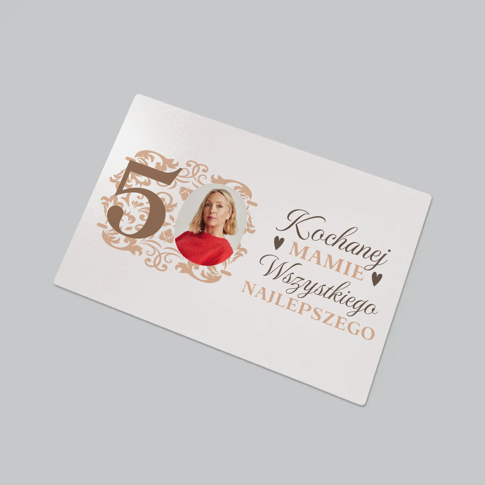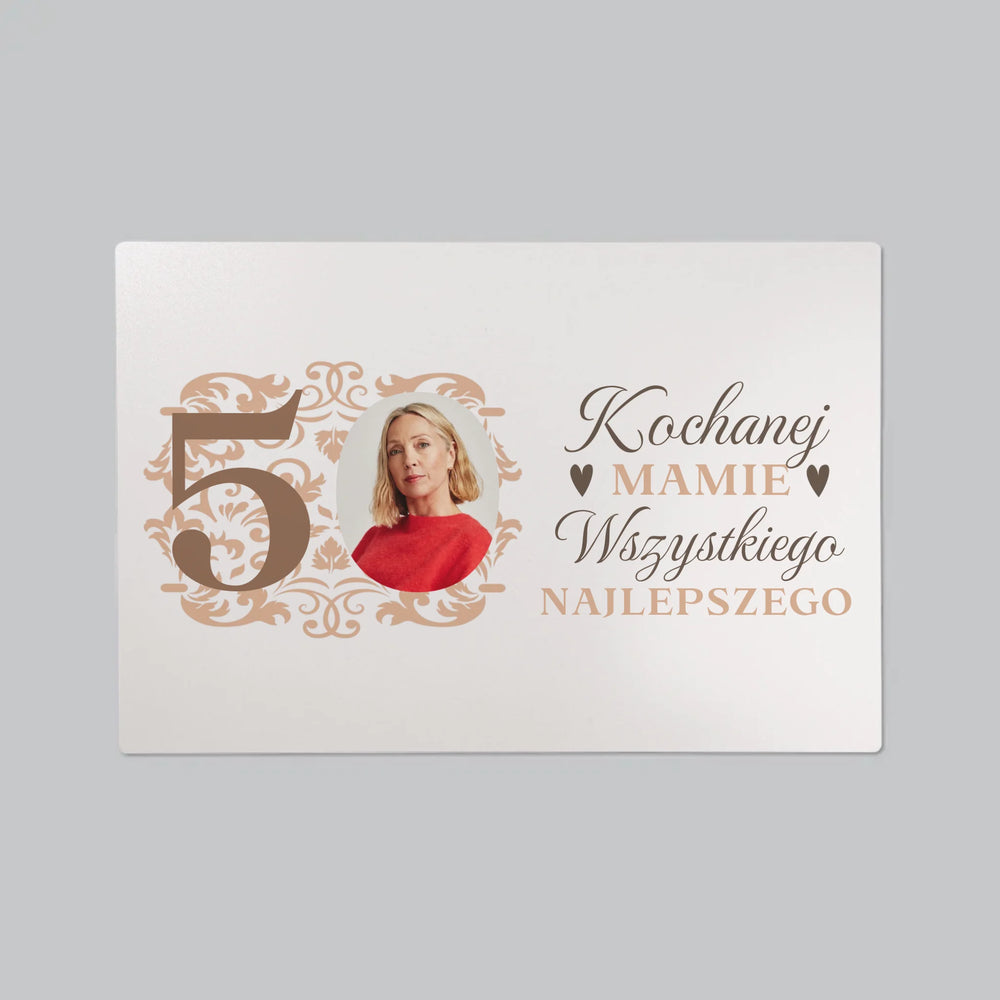 Zdjęcie I Podpis: Kochanej Mamie Z Okazji 50 Urodzin - Podkładka na Biurko z Nadrukiem