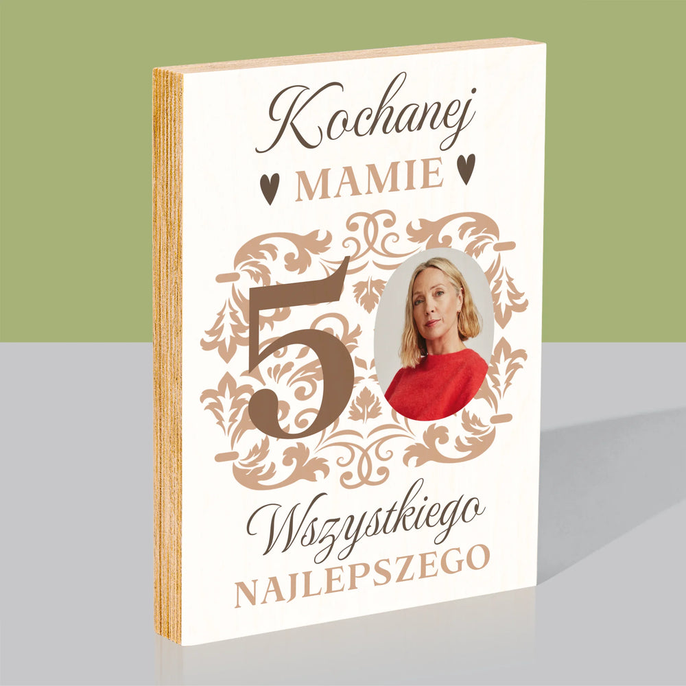 Zdjęcie I Podpis: Kochanej Mamie Z Okazji 50 Urodzin - Wydruk na drewnie - Pion