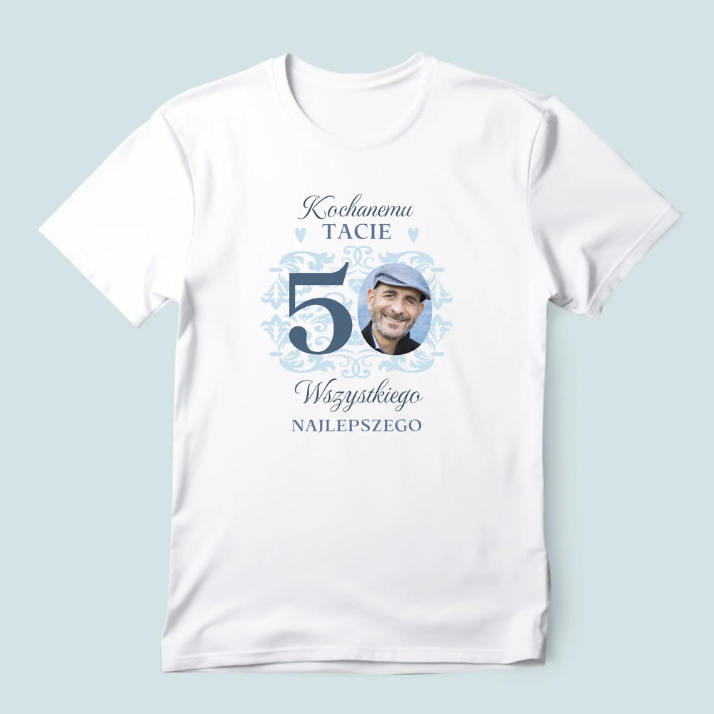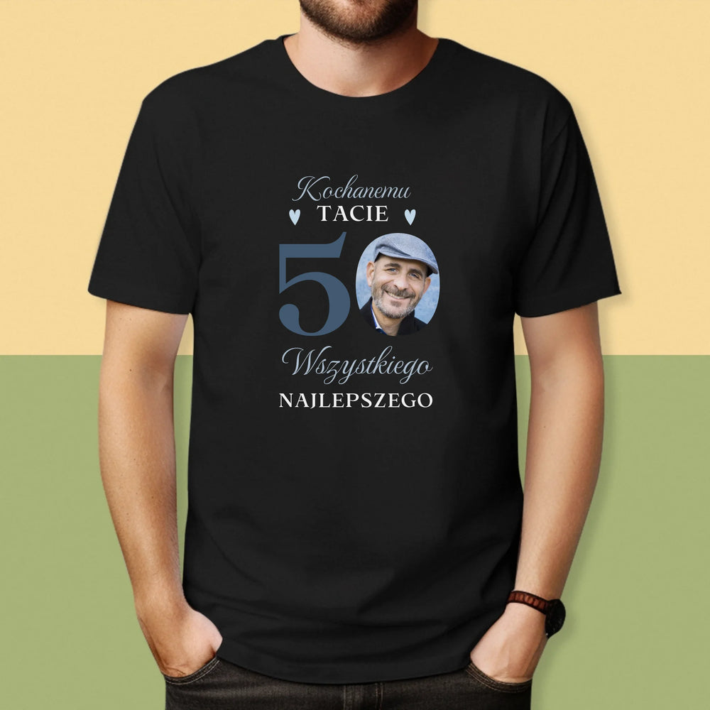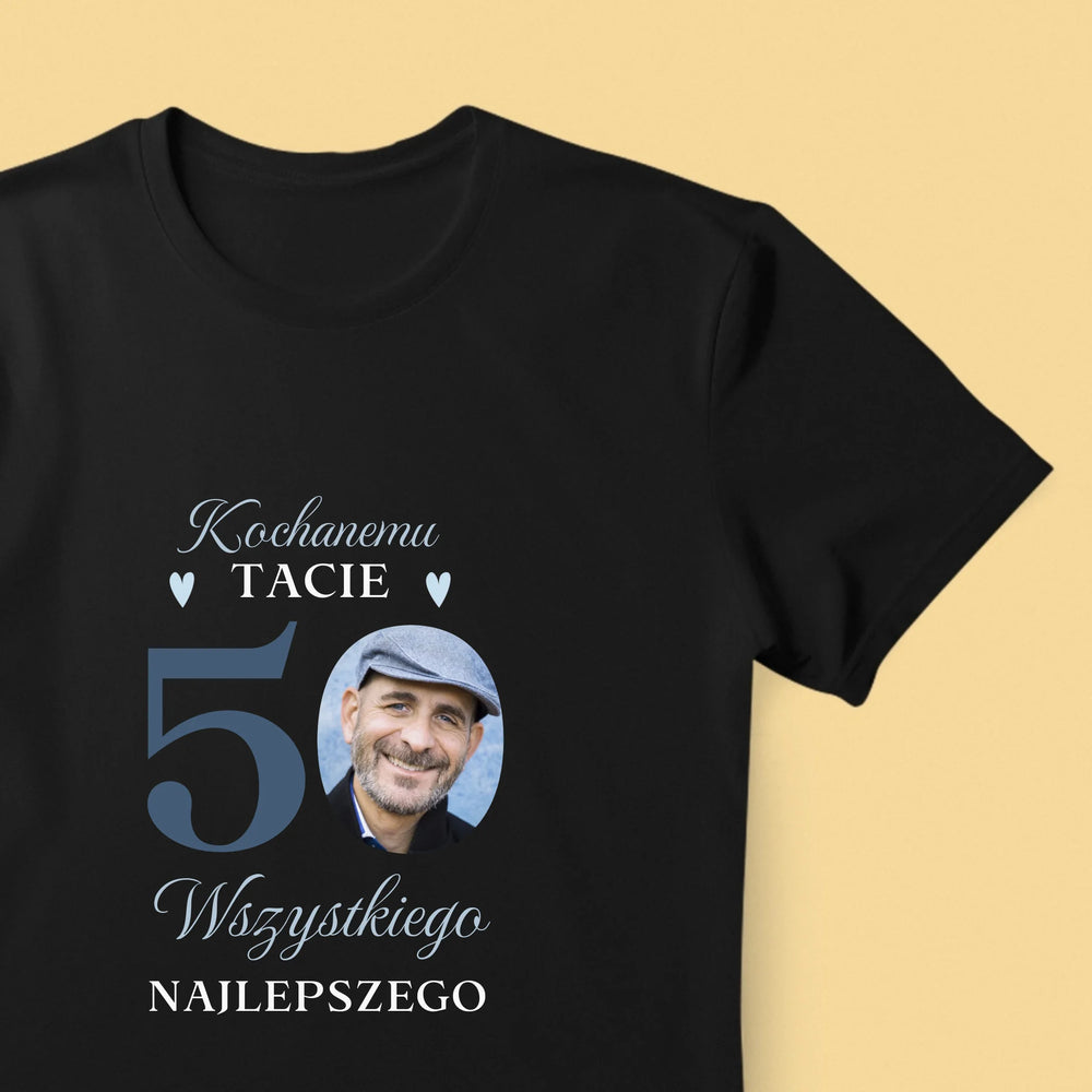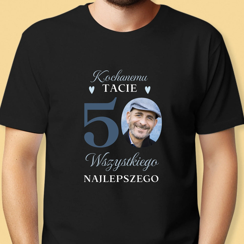 Zdjęcie I Podpis: Kochanemu Tacie Z Okazji 50 Urodzin - Personalizowana Koszulka Męska