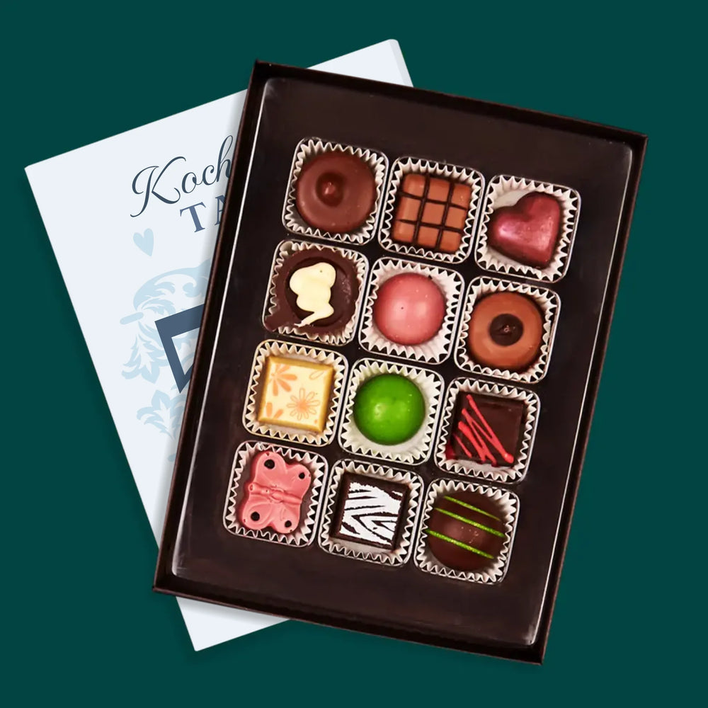 Pyszne praliny z belgijskiej czekolady w eleganckim pudełku z wybraną przez Ciebie personalizacją.