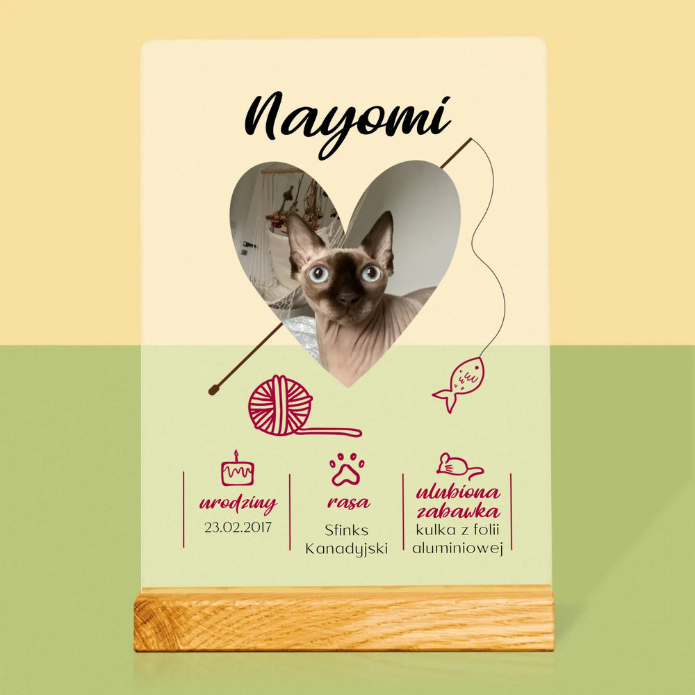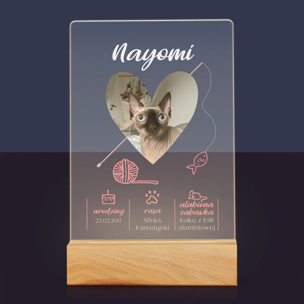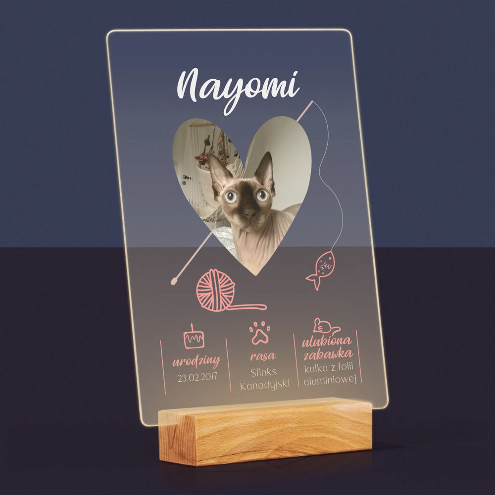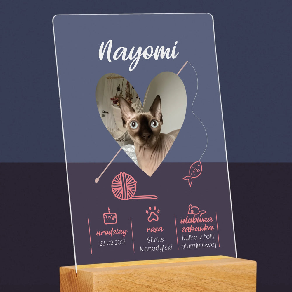 Zdjęcie i Podpis: Kocia Metryczka - Wydruk na szkle akrylowym LED