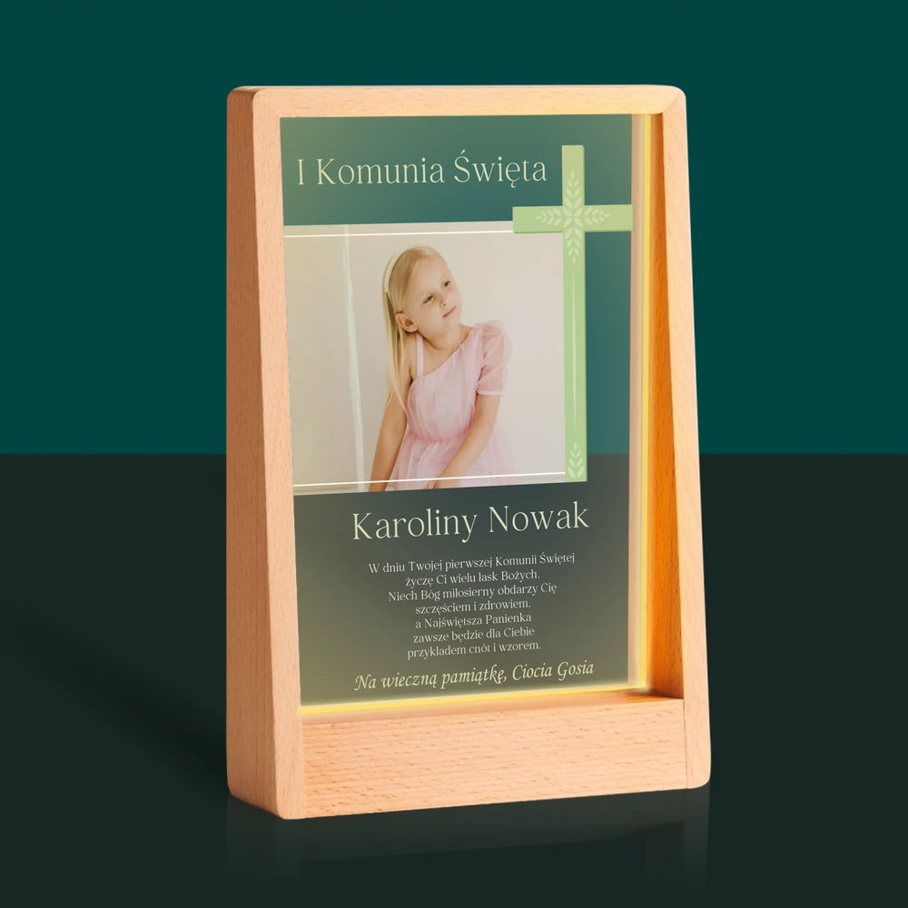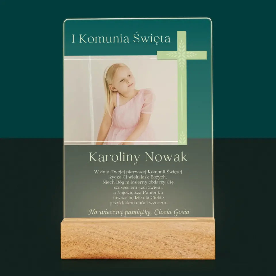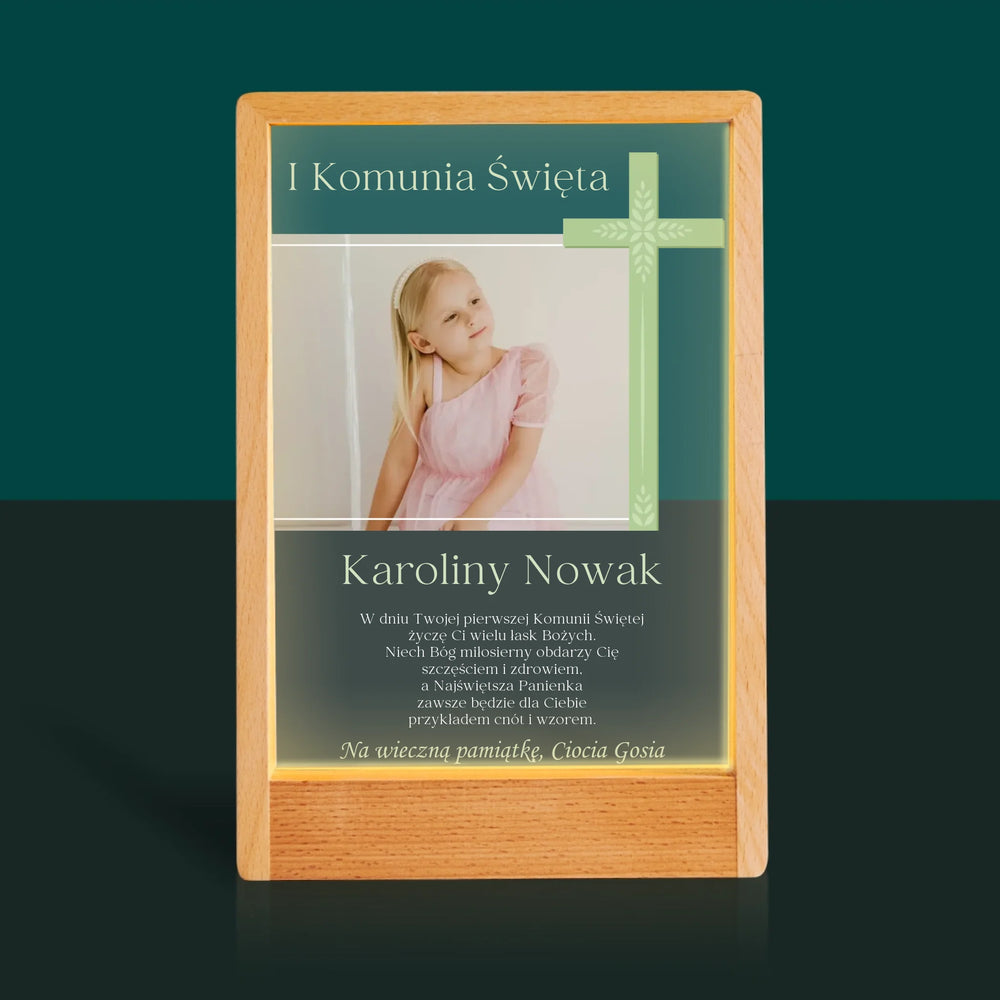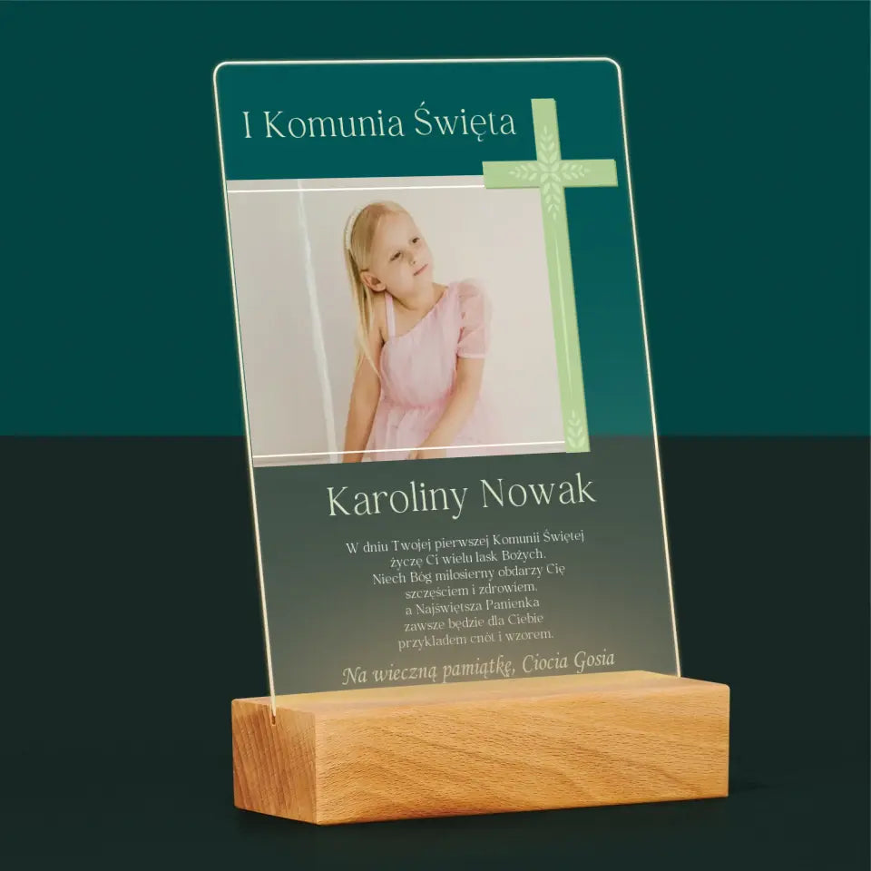 Zdjęcie i Podpis: Komunia Zdjęcie Krzyż - Wydruk na szkle akrylowym