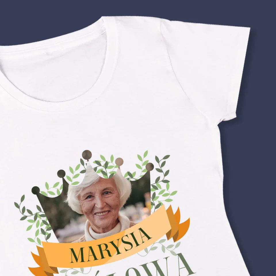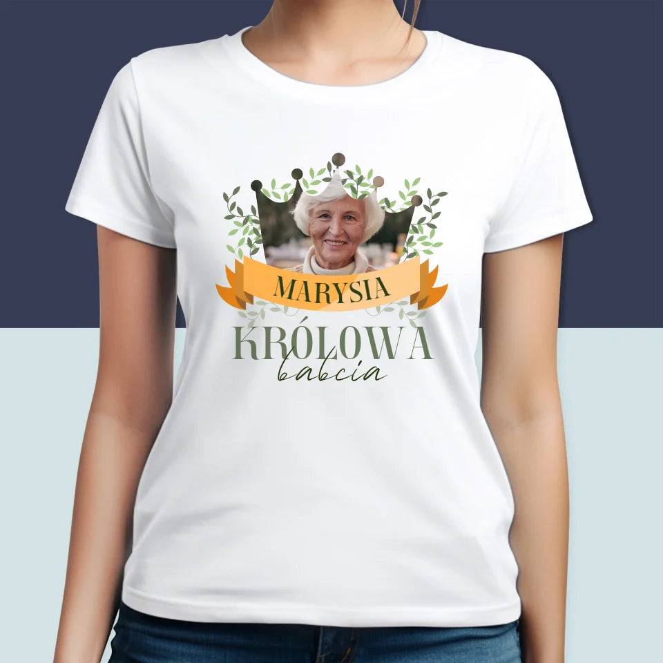 Zdjęcie i Podpis: Królowa Babcia - Personalizowana Koszulka Damska