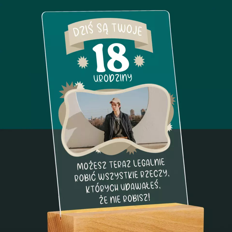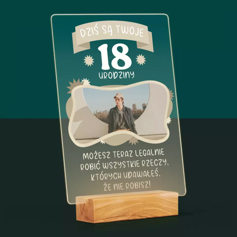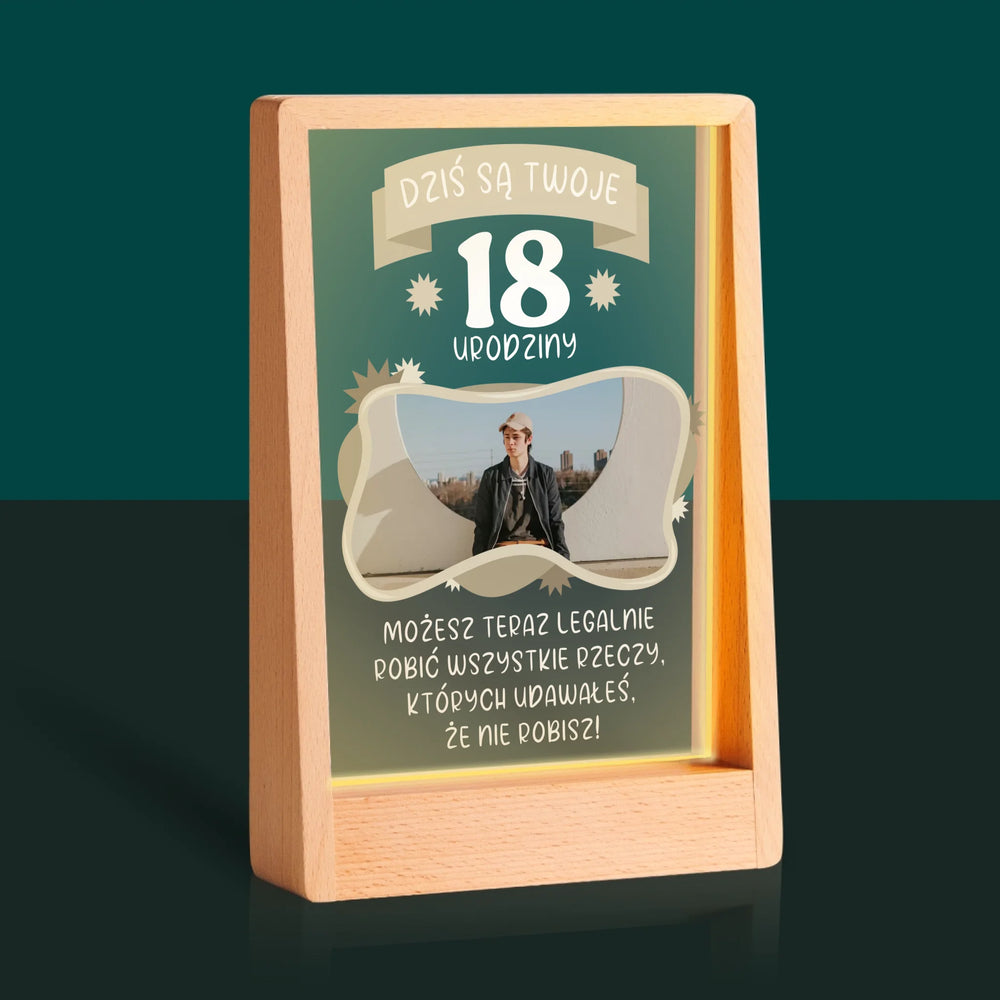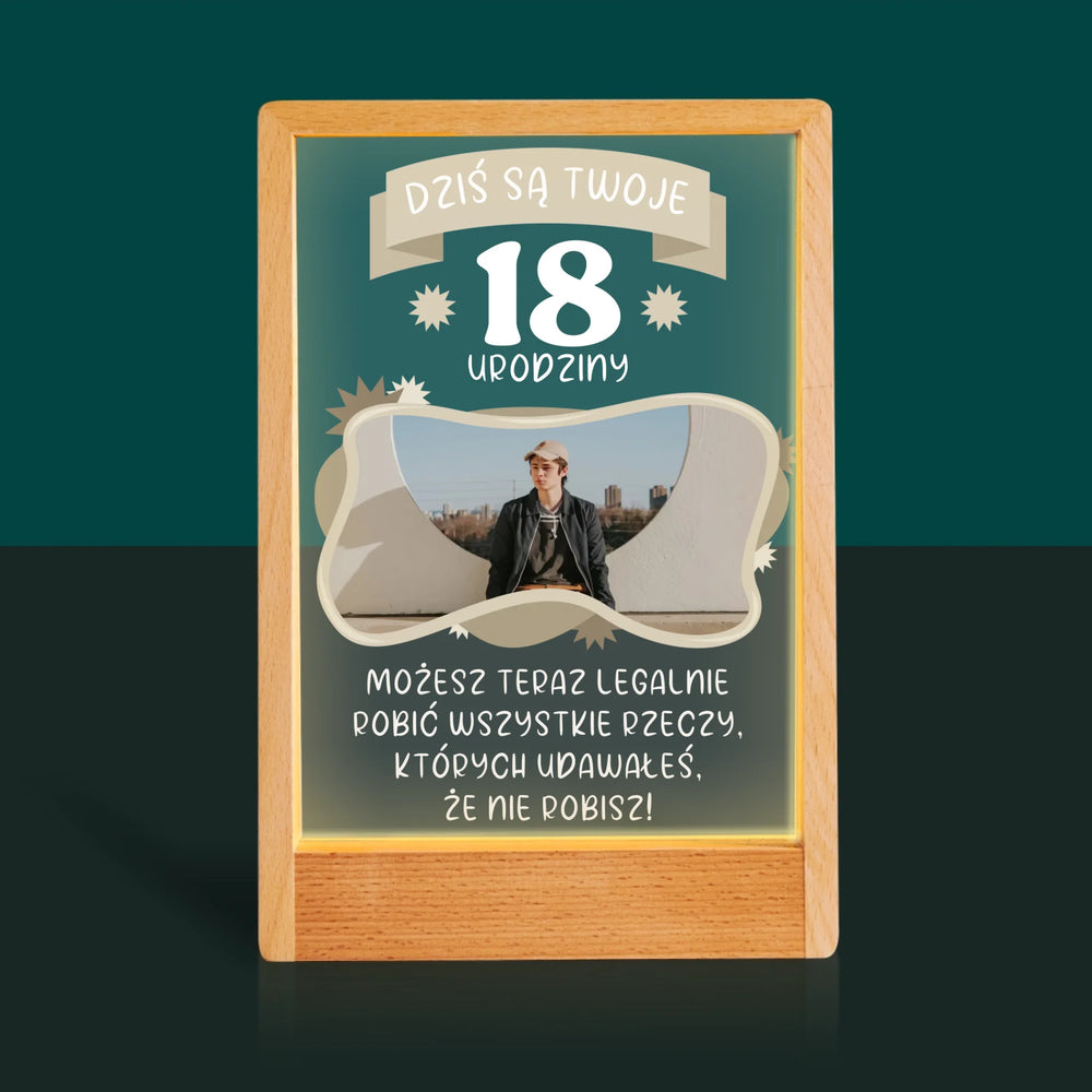 Zdjęcie i Podpis: Legalne Urodziny - Wydruk na szkle akrylowym w ramce LED