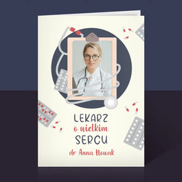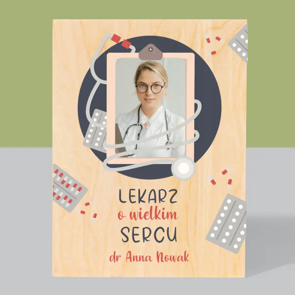 Zdjęcie i Podpis: Lekarz o Wielkim Sercu - Wydruk na drewnie - Pion