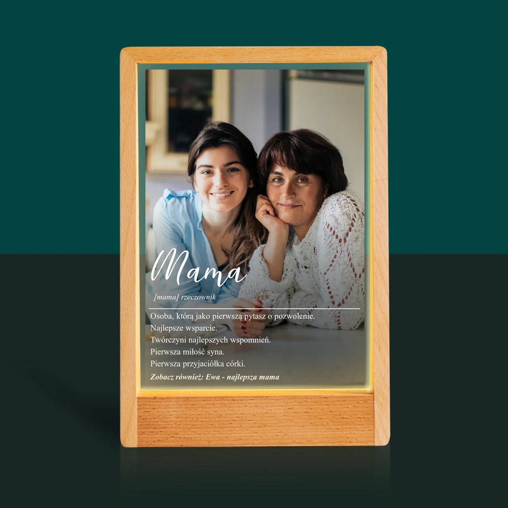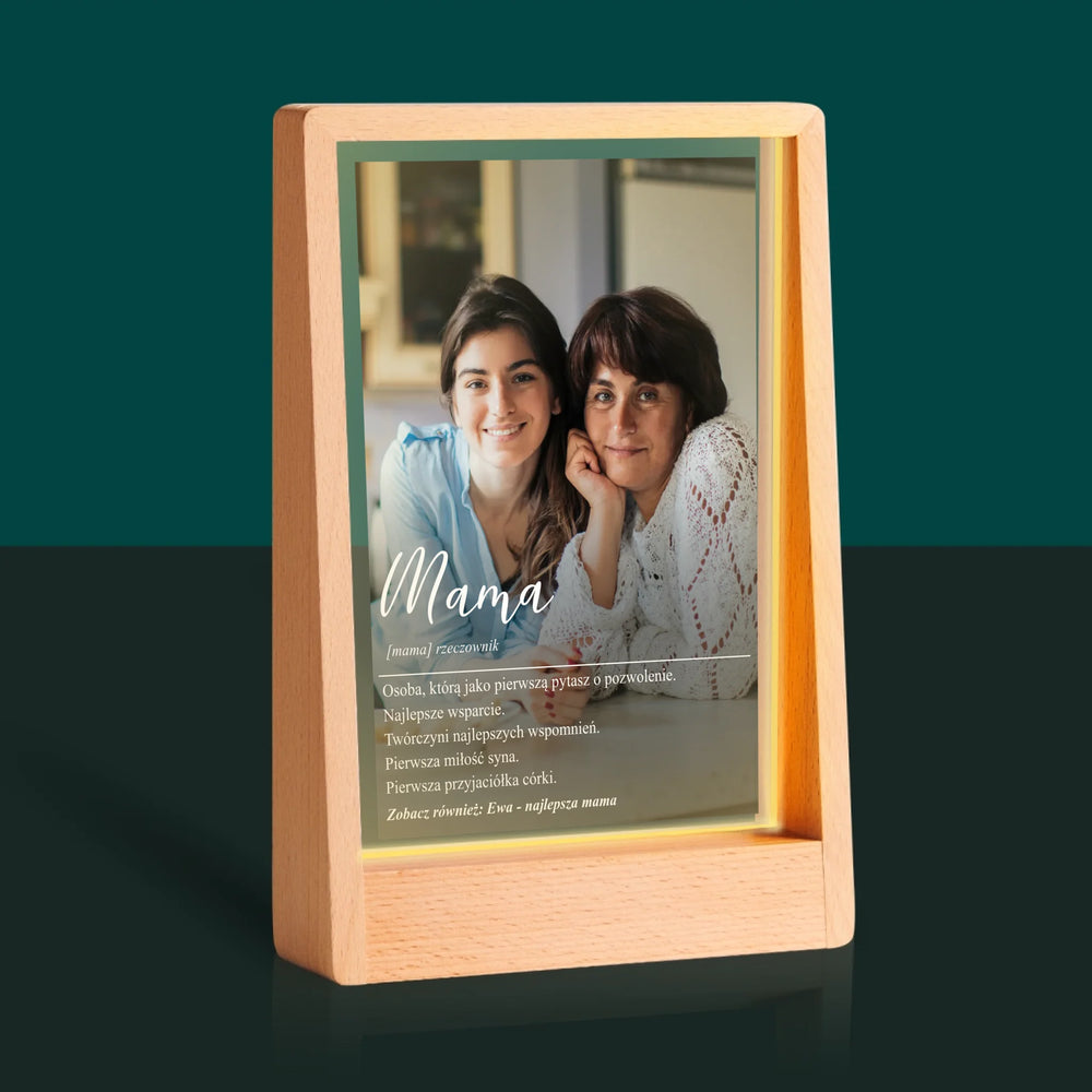 Zdjęcie i Podpis: Mama Definicja - Wydruk na szkle akrylowym w ramce LED
