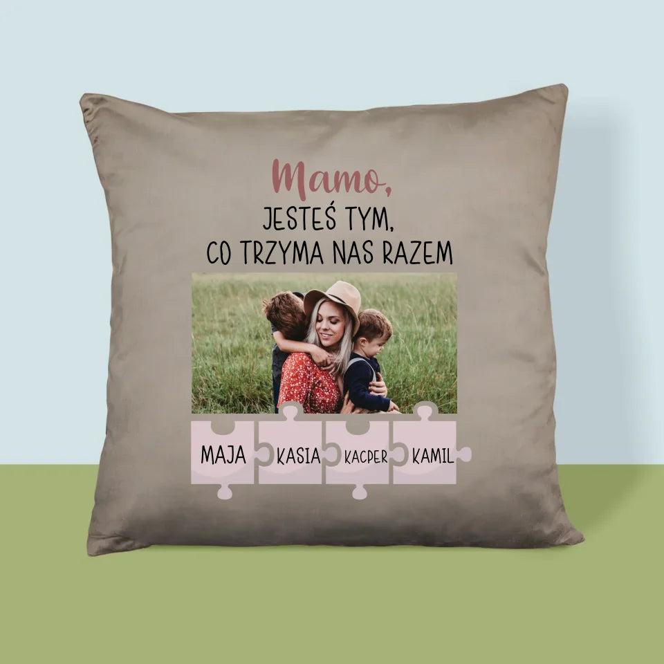 Zdjęcie i Podpis: Mamo, Jesteś Tym Co Trzyma Nas Razem - Poduszka z Nadrukiem