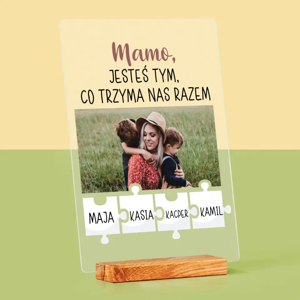 Zdjęcie i Podpis: Mamo, Jesteś Tym Co Trzyma Nas Razem - Wydruk na szkle akrylowym