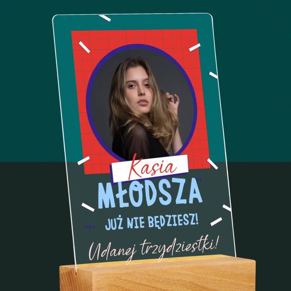 Zdjęcie i Podpis: Młodsza Nie Będziesz - Wydruk na szkle akrylowym