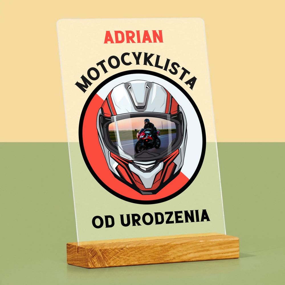 Zdjęcie I Podpis: Motocyklista Od Urodzenia - Wydruk na szkle akrylowym