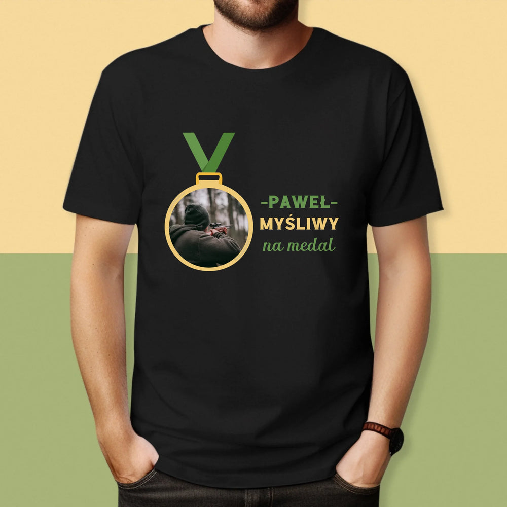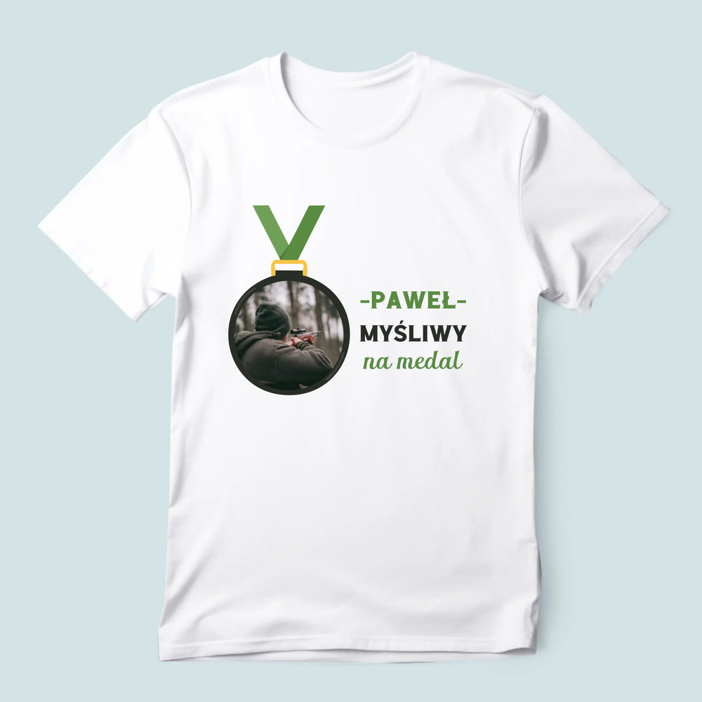 Zdjęcie I Podpis: Myśliwy Na Medal - Personalizowana Koszulka Męska