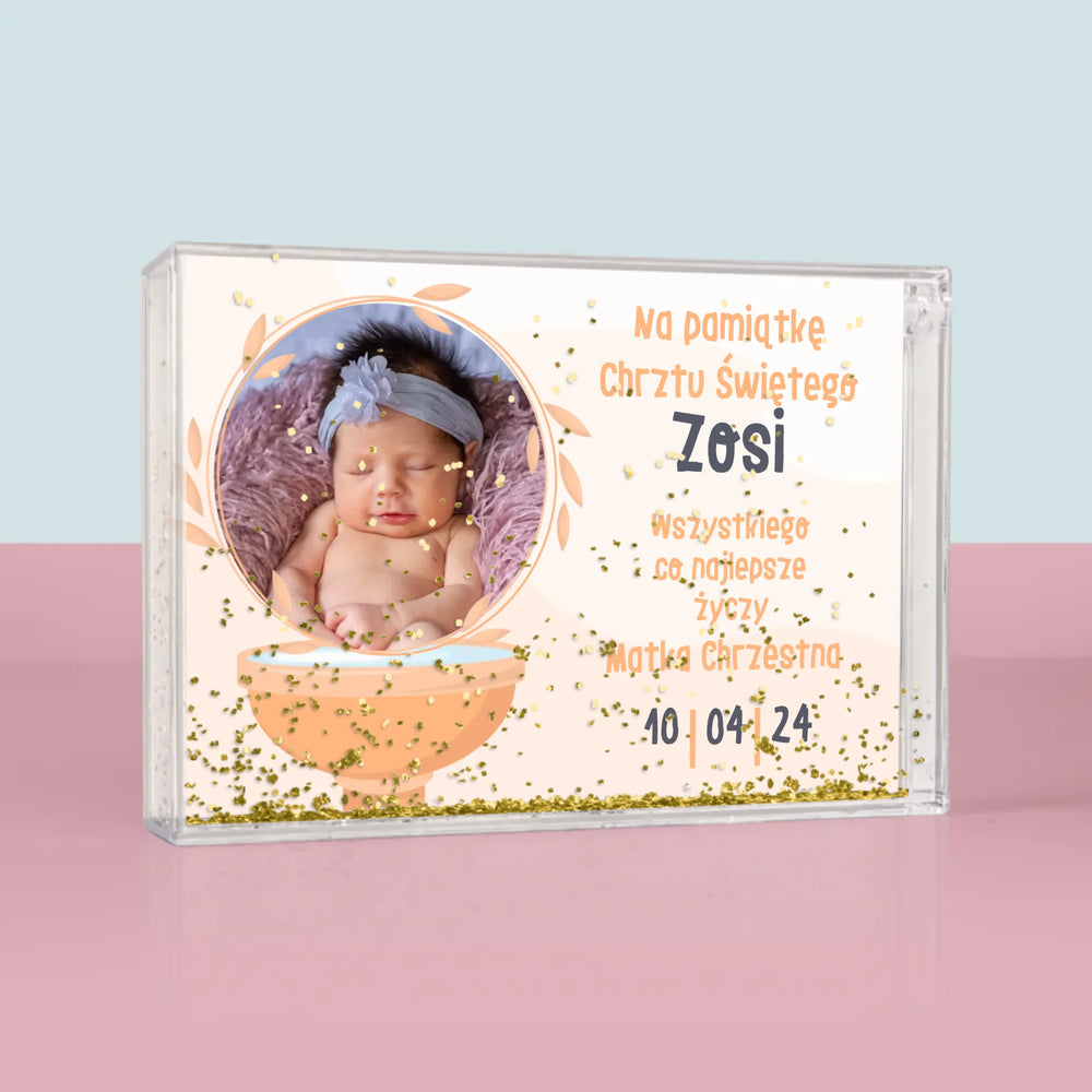 Zdjęcie i Podpis: Na Pamiątkę Chrztu Świętego - Personalizowana Ramka Wodna