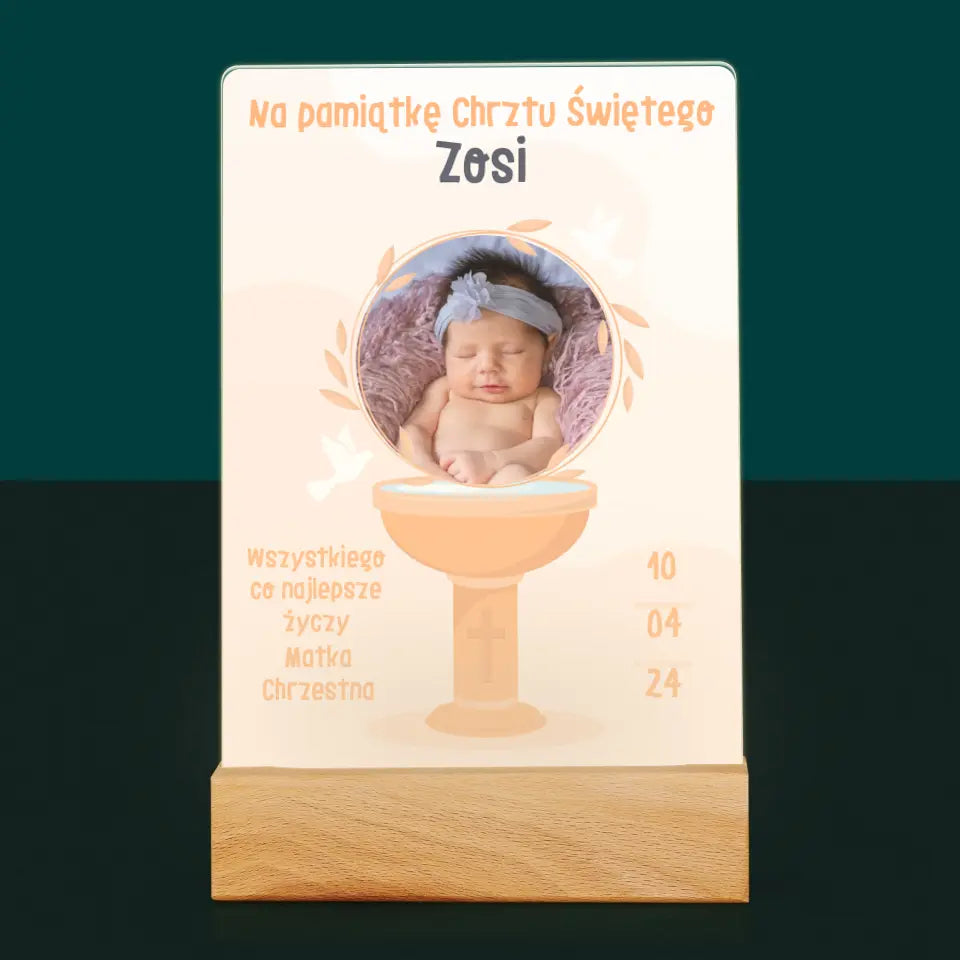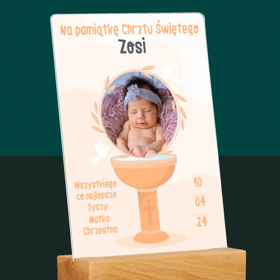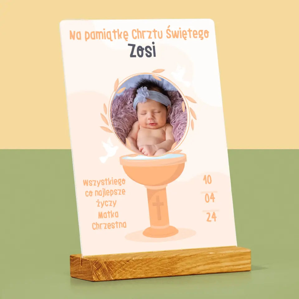 Zdjęcie i Podpis: Na Pamiątkę Chrztu Świętego - Wydruk na szkle akrylowym