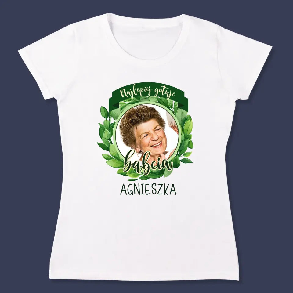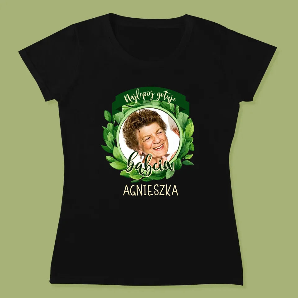 Zdjęcie i Podpis: Najlepiej Gotuje - Personalizowana Koszulka Damska