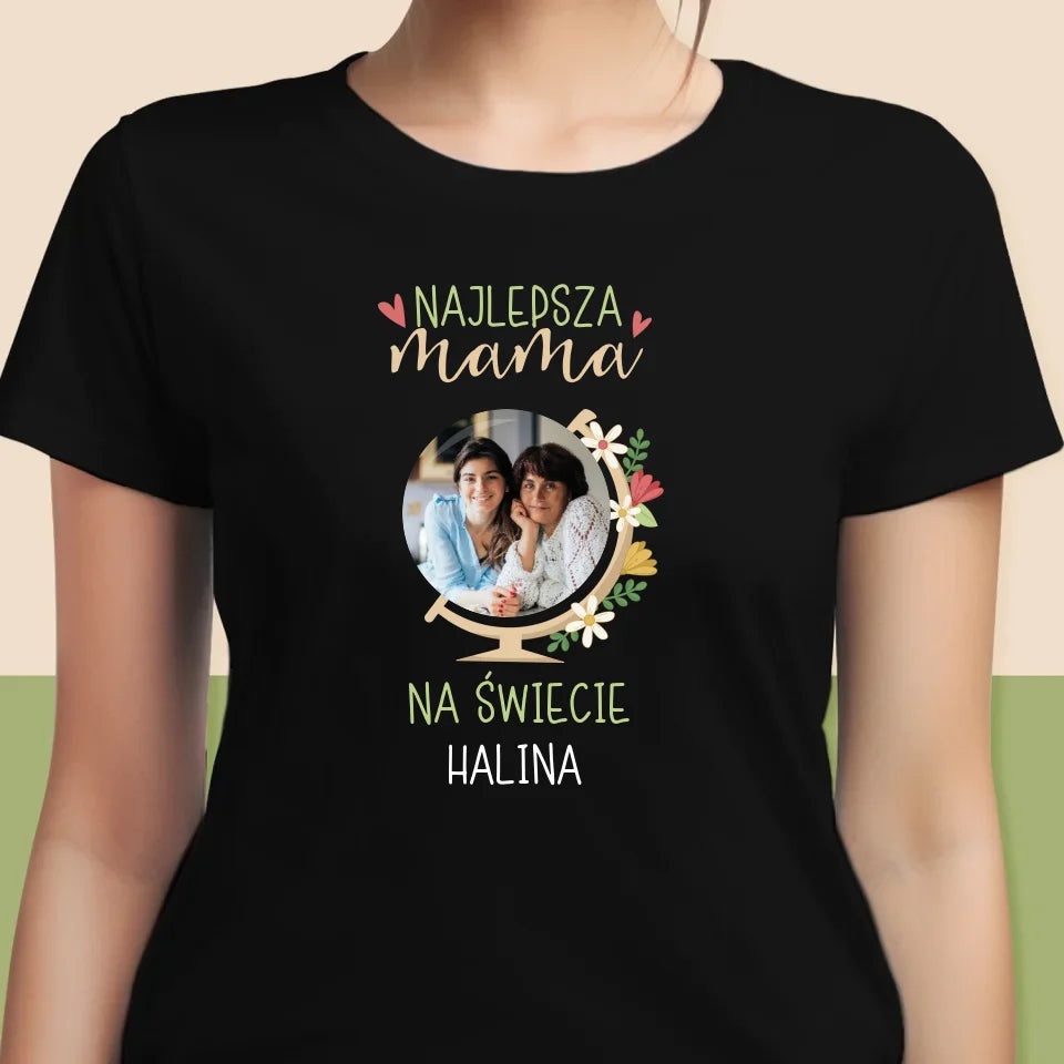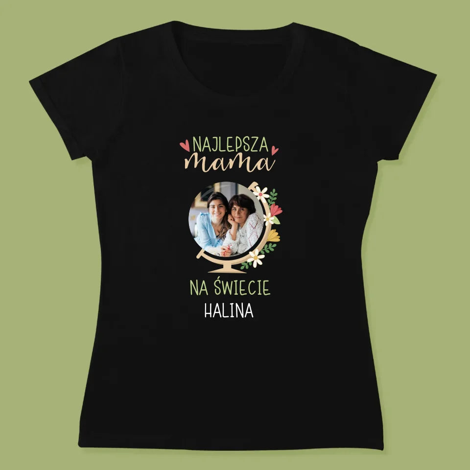 Zdjęcie i Podpis: Najlepsza Mama Świat - Personalizowana Koszulka Damska