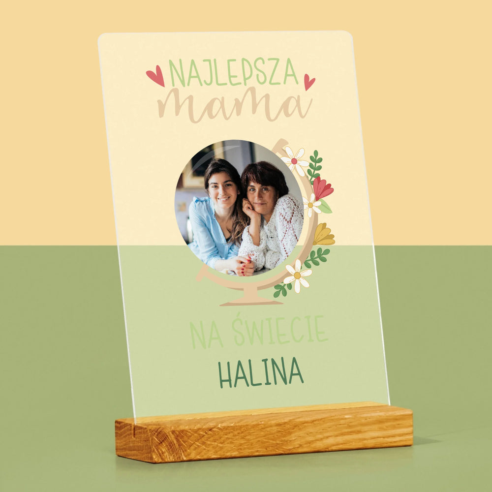 Zdjęcie i Podpis: Najlepsza Mama Świat - Wydruk na szkle akrylowym LED