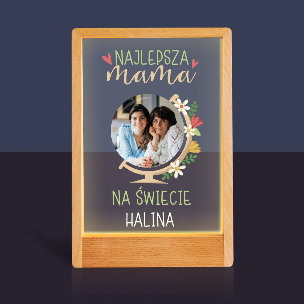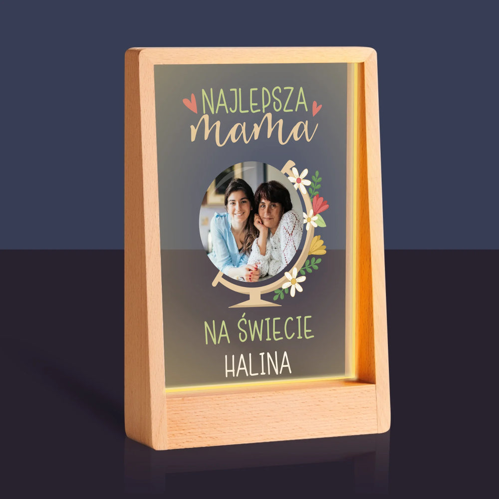 Zdjęcie i Podpis: Najlepsza Mama Świat - Wydruk na szkle akrylowym w ramce LED