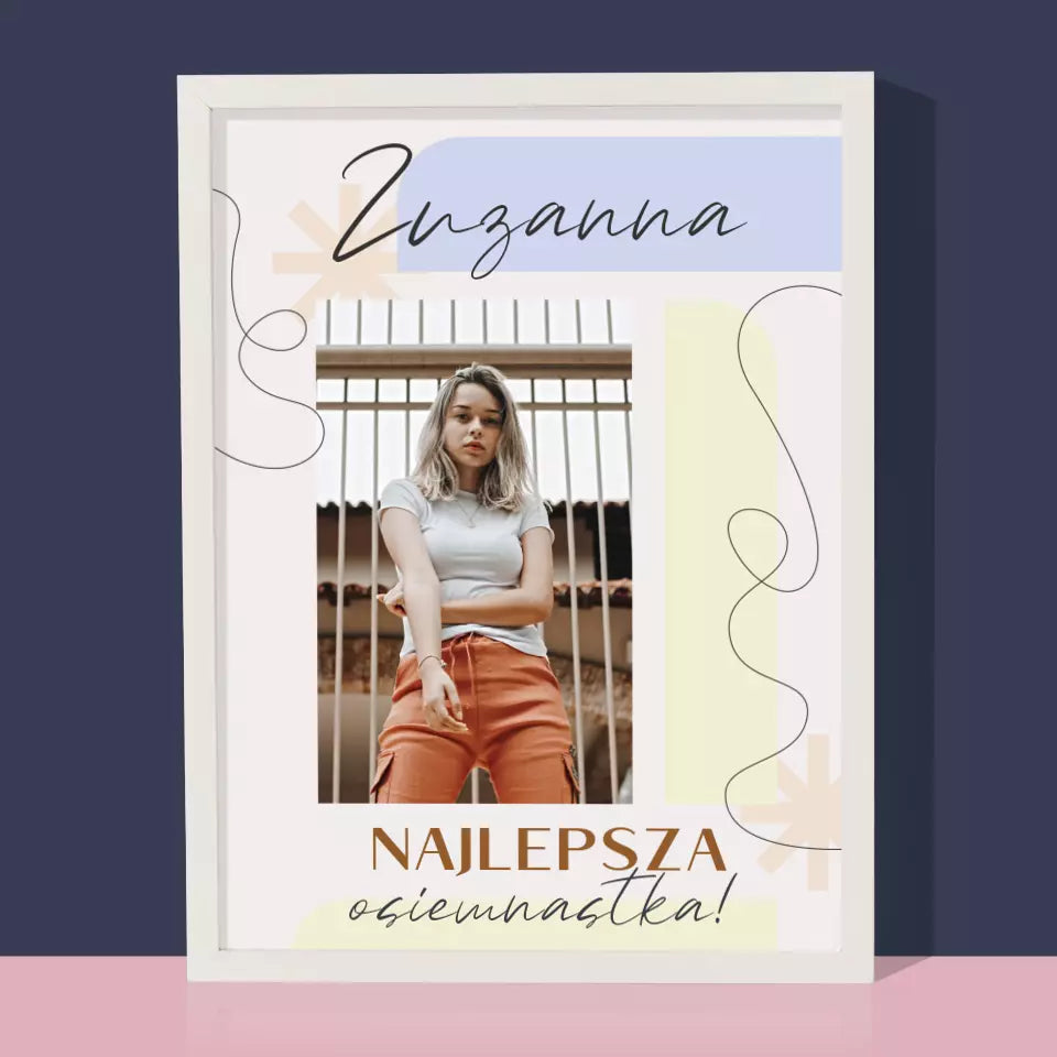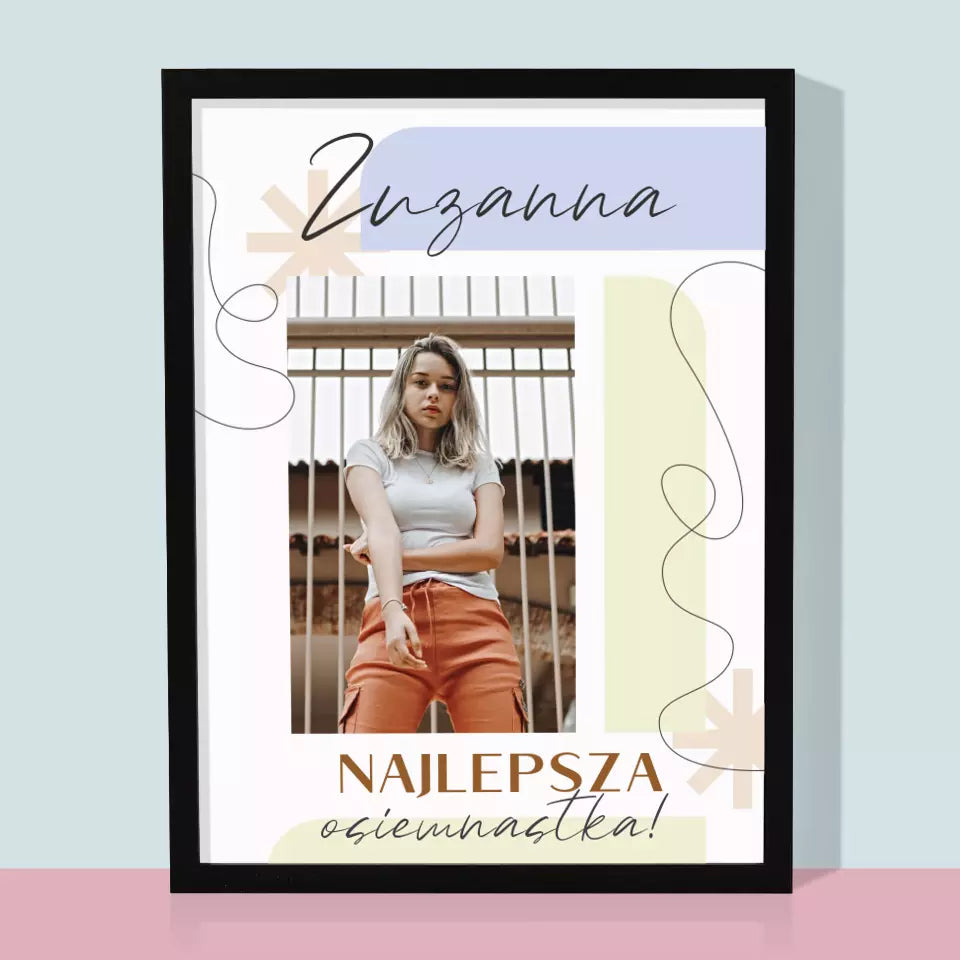 Zdjęcie i Podpis: Najlepsza Osiemnastka - Wydruk obramowany - Pion