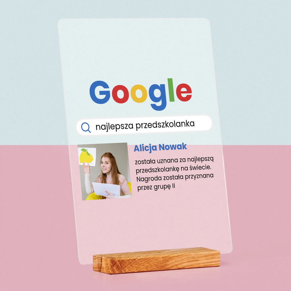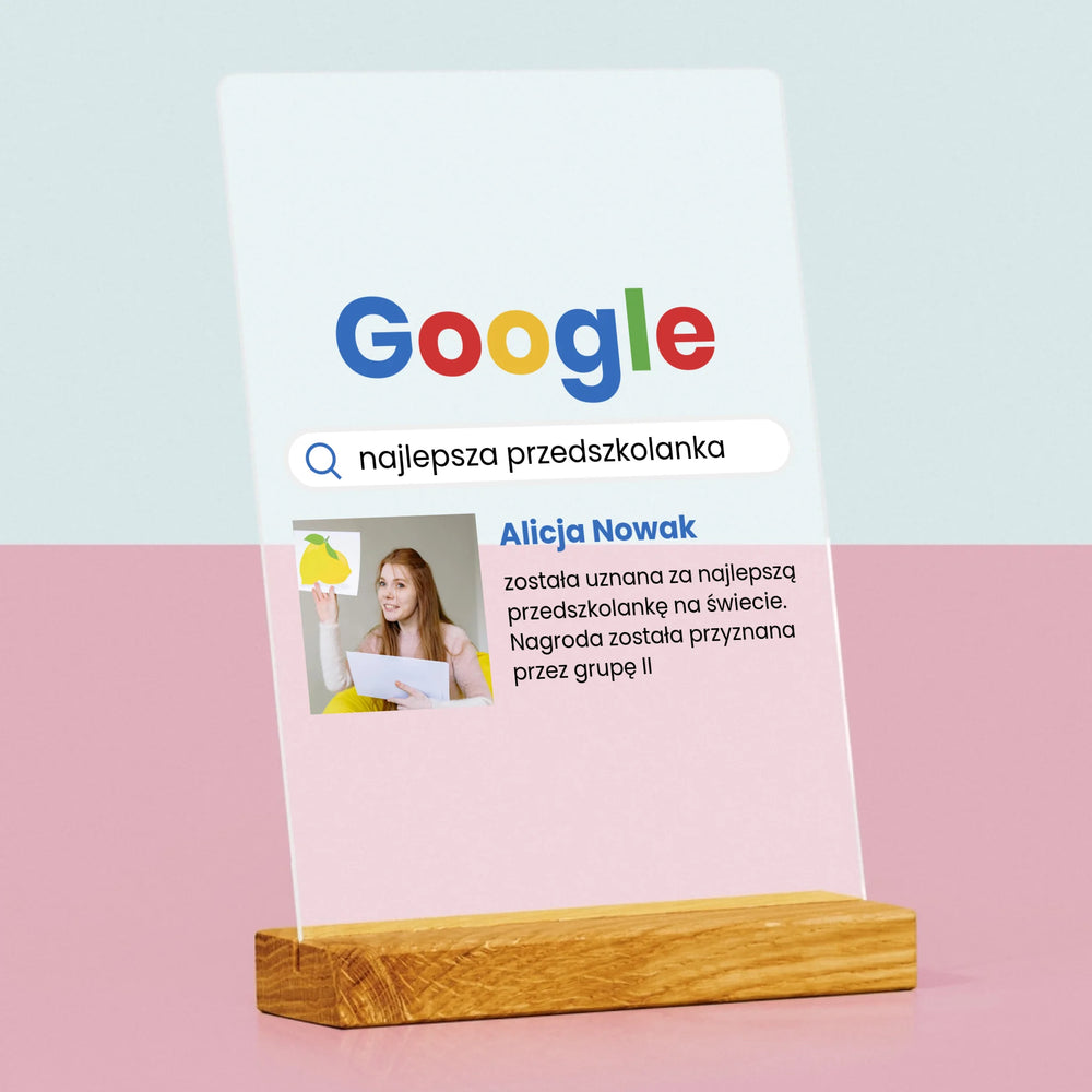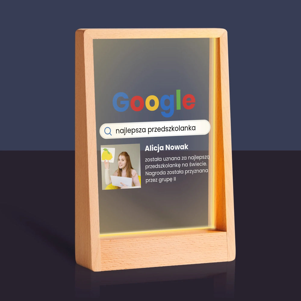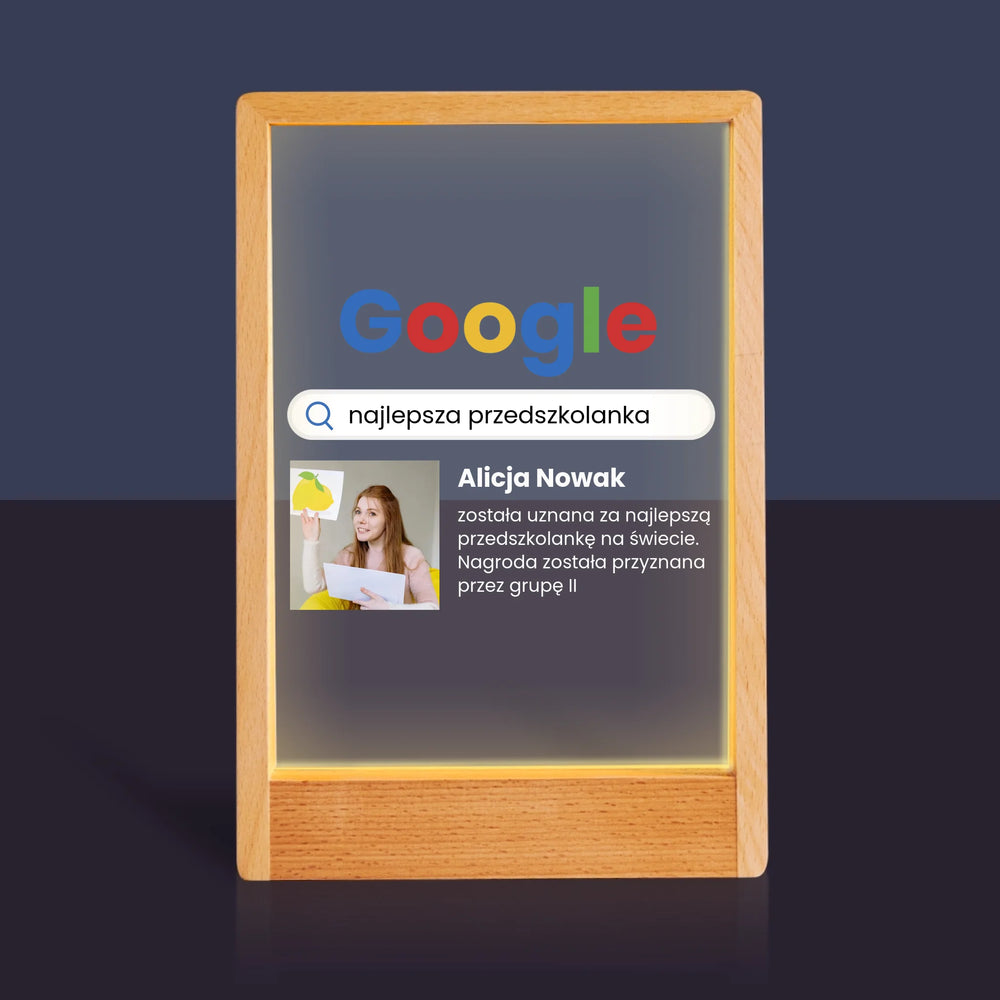 Zdjęcie I Podpis: Najlepsza Przedszkolanka Wynik Google - Wydruk na szkle akrylowym w ramce LED