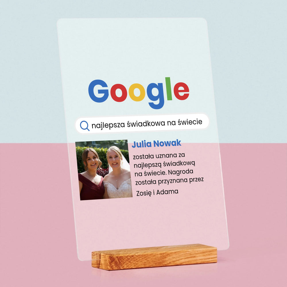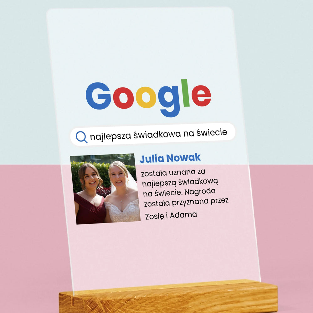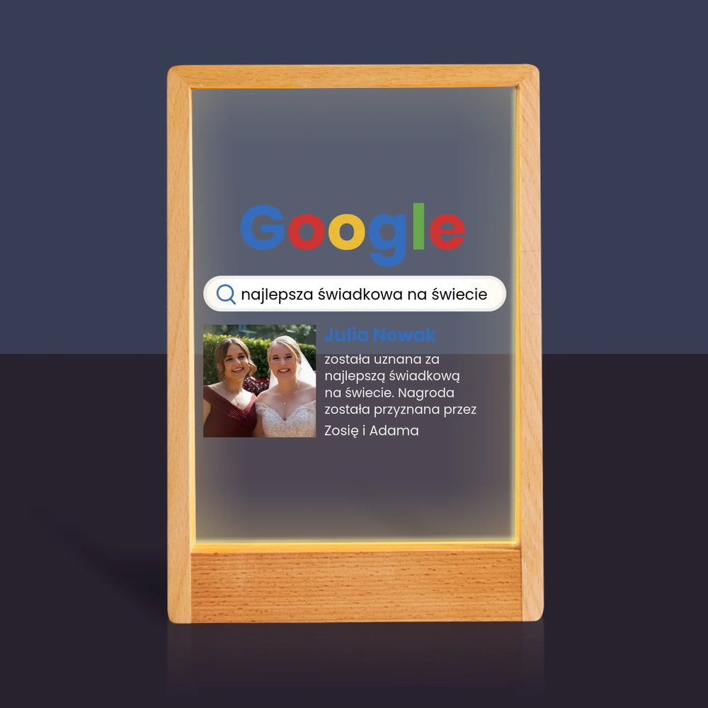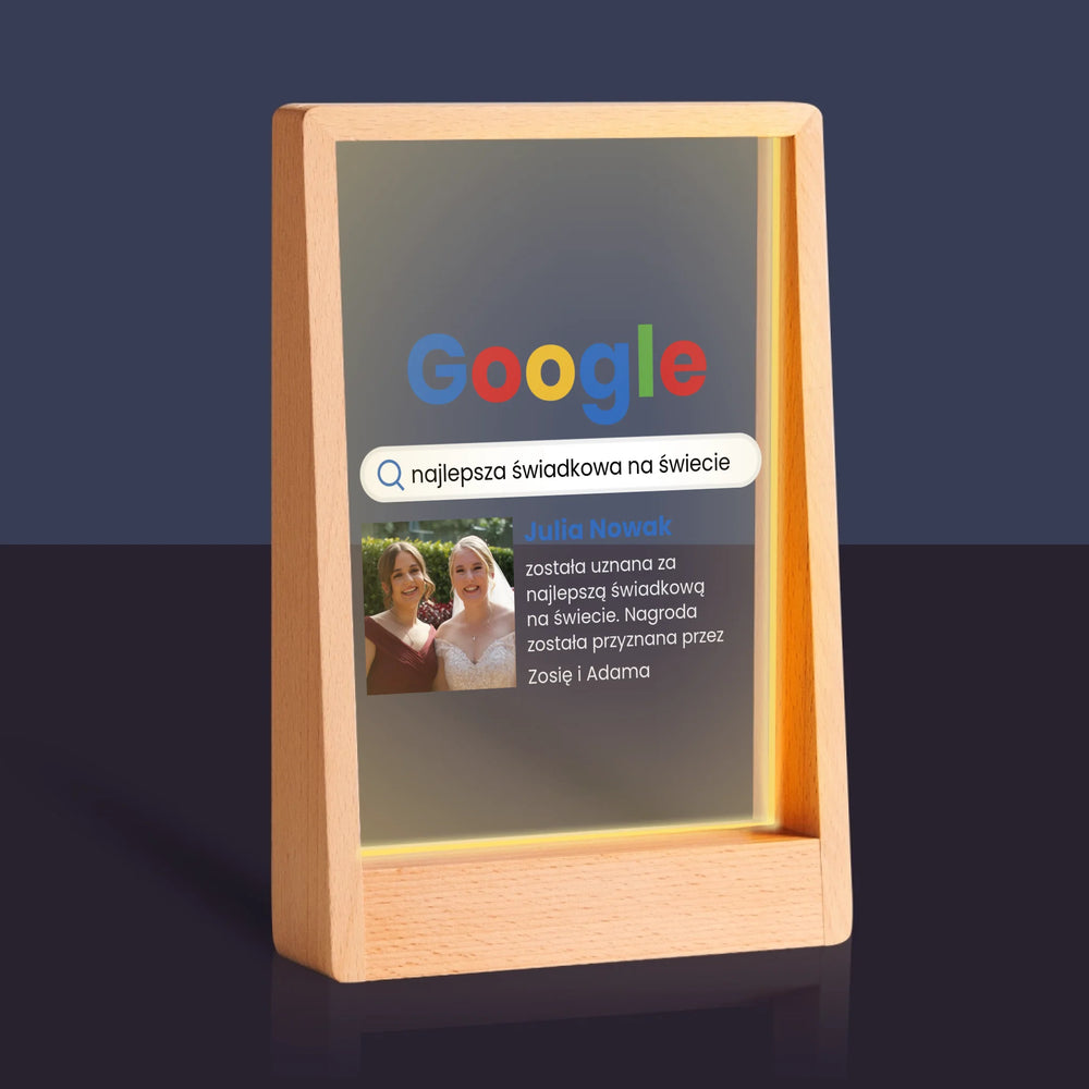 Zdjęcie I Podpis: Najlepsza Świadkowa Wynik Google - Wydruk na szkle akrylowym w ramce LED
