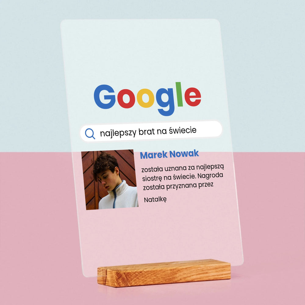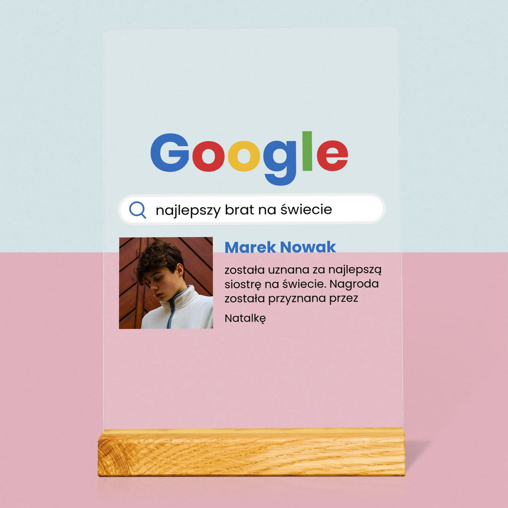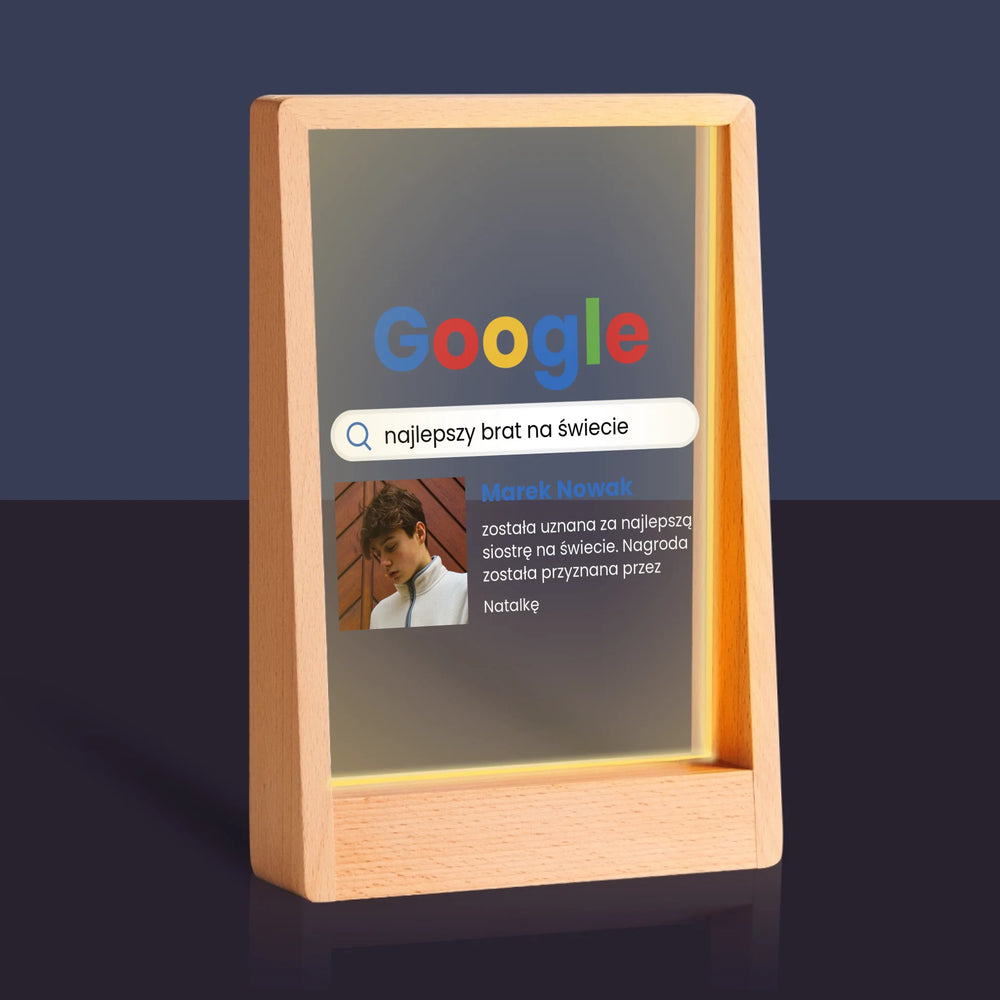 Zdjęcie I Podpis: Najlepszy Brat Wynik Google - Wydruk na szkle akrylowym w ramce LED