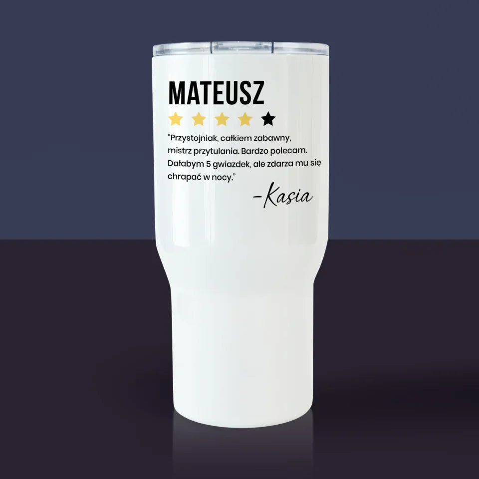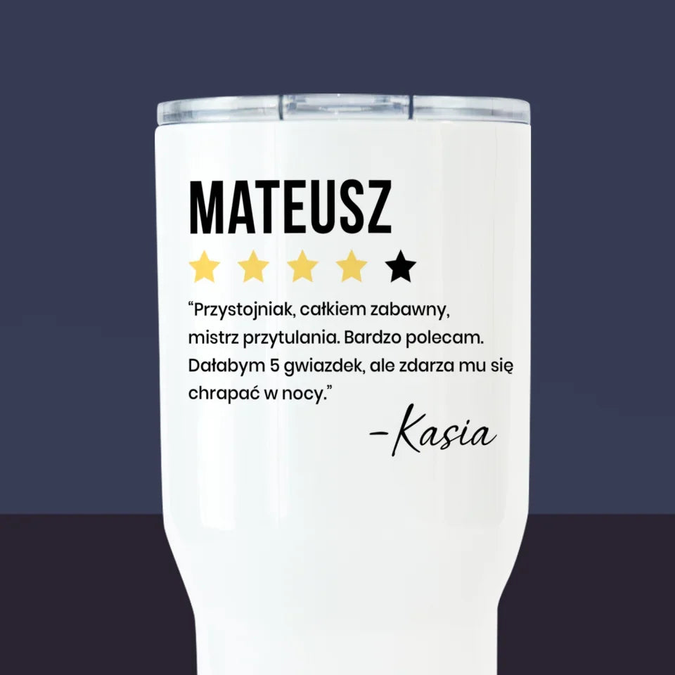Wysokiej jakości kubek termiczny z wybraną przez Ciebie personalizacją.