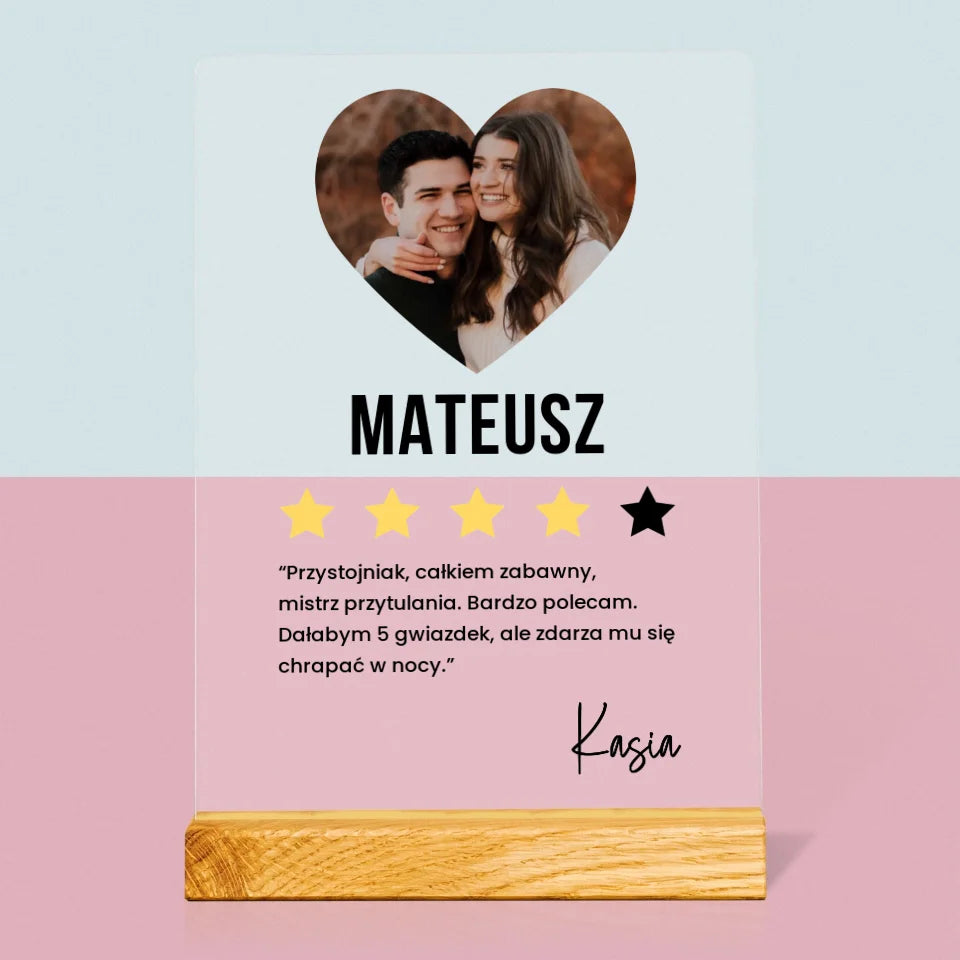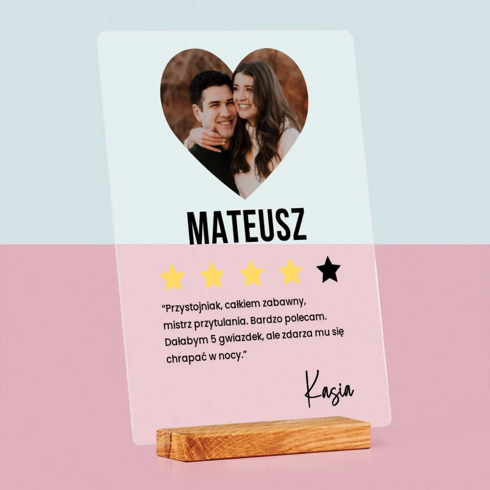 Zdjęcie I Podpis: Najlepszy Chłopak Polecam - Wydruk na szkle akrylowym