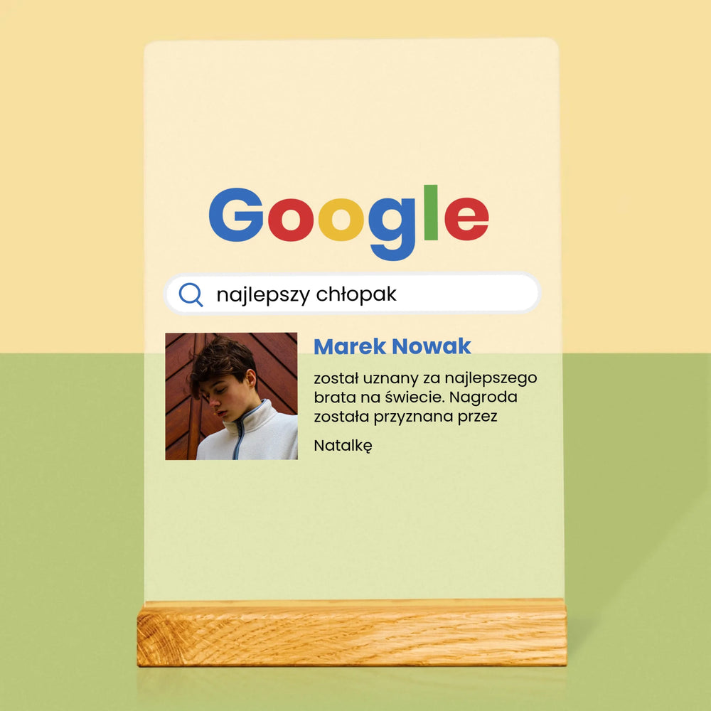 Zdjęcie I Podpis: Najlepszy Chłopak Wynik Google - Wydruk na szkle akrylowym