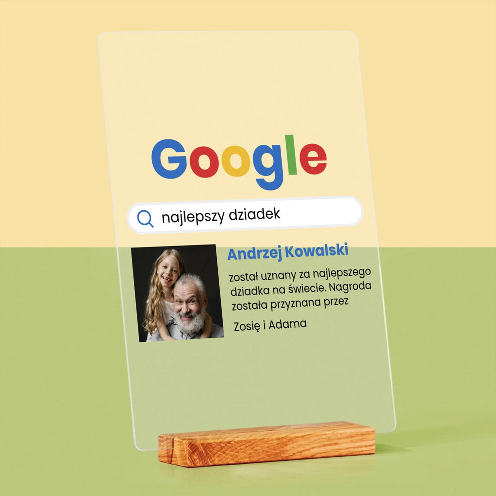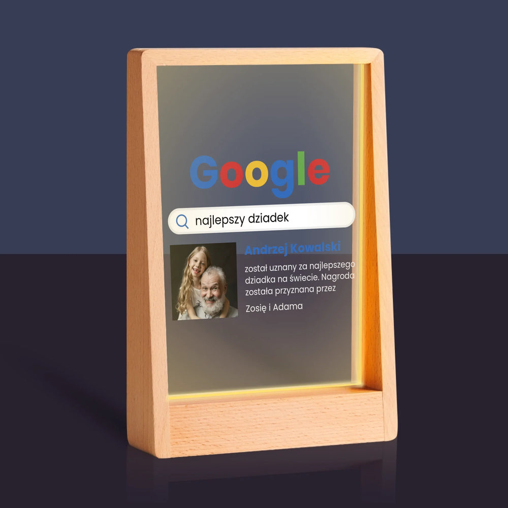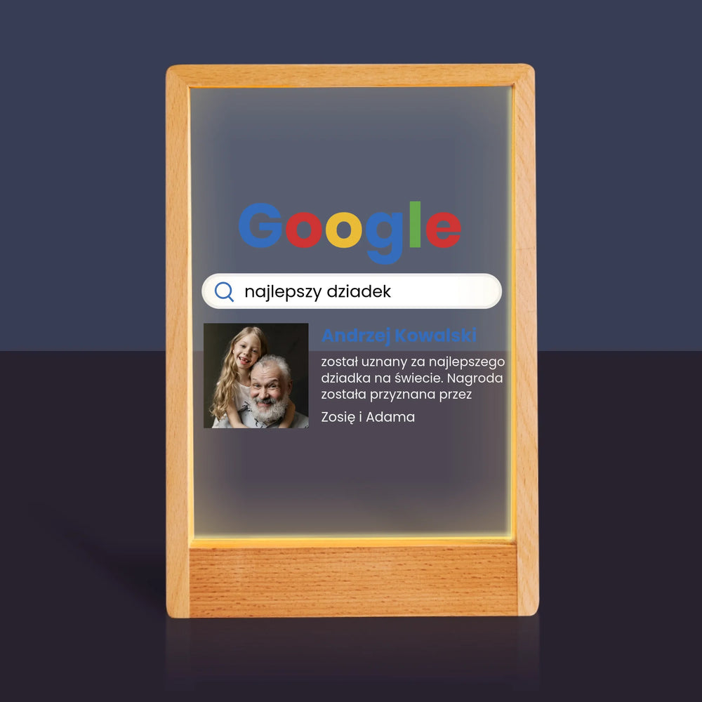 Zdjęcie I Podpis: Najlepszy Dziadek Wynik Google - Wydruk na szkle akrylowym w ramce LED