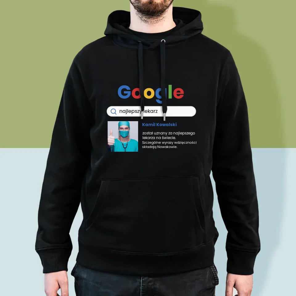 Zdjęcie i Podpis: Najlepszy Lekarz Wynik Google - Bluza męska bez kaptura