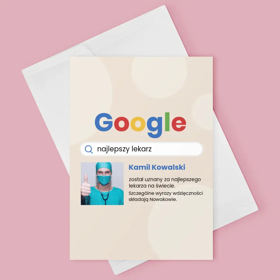 Zdjęcie i Podpis: Najlepszy Lekarz Wynik Google - Kartka z życzeniami