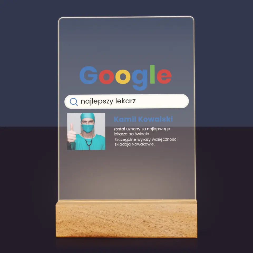 Zdjęcie i Podpis: Najlepszy Lekarz Wynik Google - Wydruk na szkle akrylowym