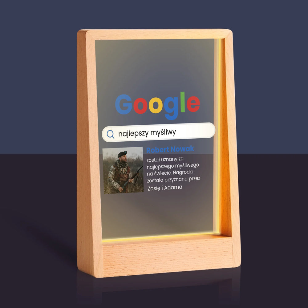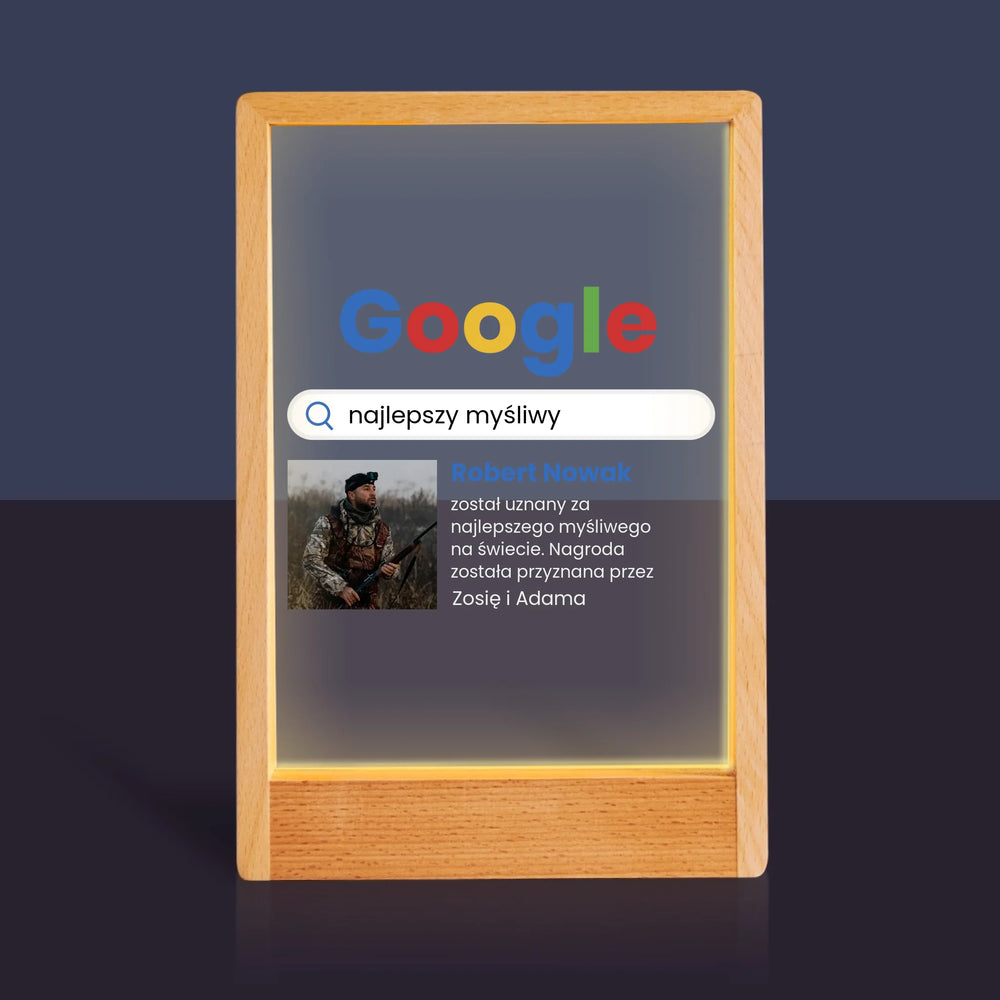 Zdjęcie I Podpis: Najlepszy Myśliwy Wynik Google - Wydruk na szkle akrylowym