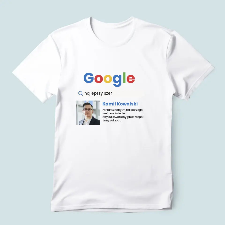Zdjęcie i Podpis: Najlepszy Szef Wynik Google - Personalizowana Koszulka Męska